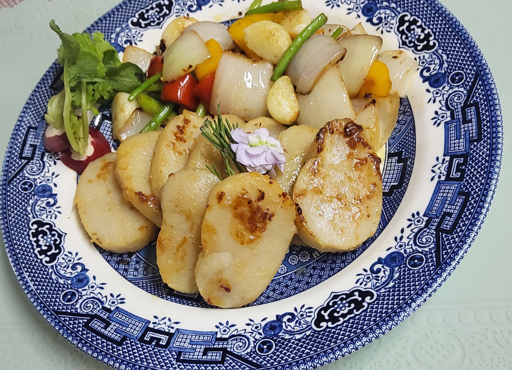 관자는 먹을때 가위로 똑똑잘라서 개인접시에 야채랑 담아서 와시비간장에 콕~찍어먹어요