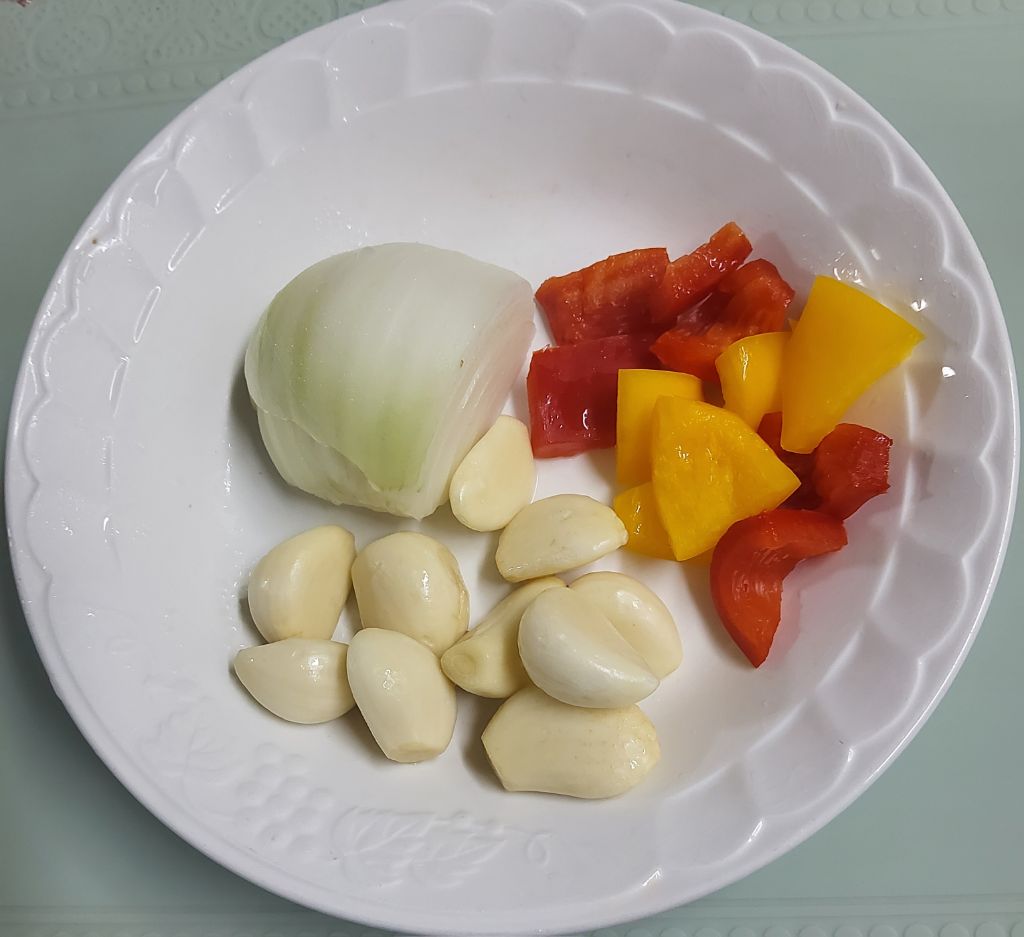 양파1/4,마늘 한줌,파프리카 자투리 홍,노,