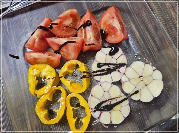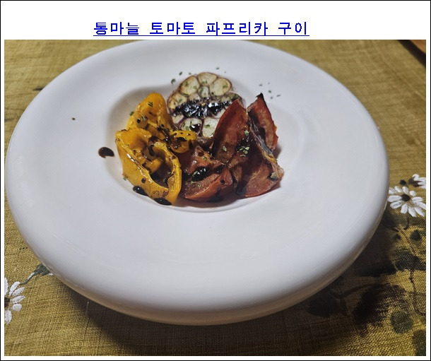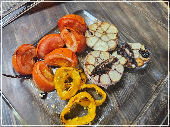 맛있게 만들어진 마늘 파프리카 토마토 구이 완성입니다