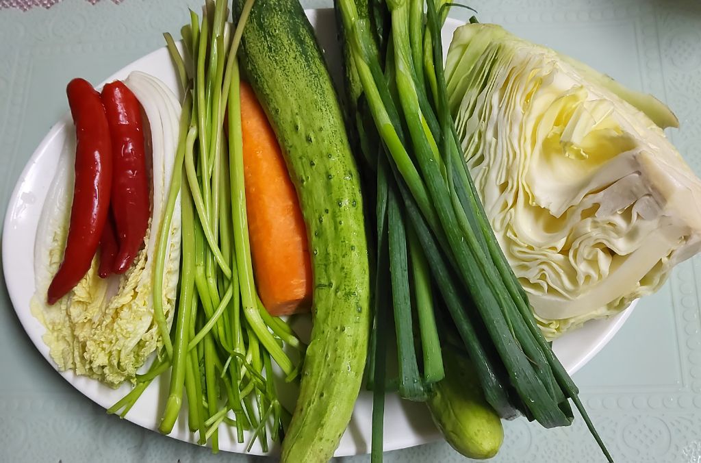 재료~양배추 1/4통 ,오이2개,실파,미나리,