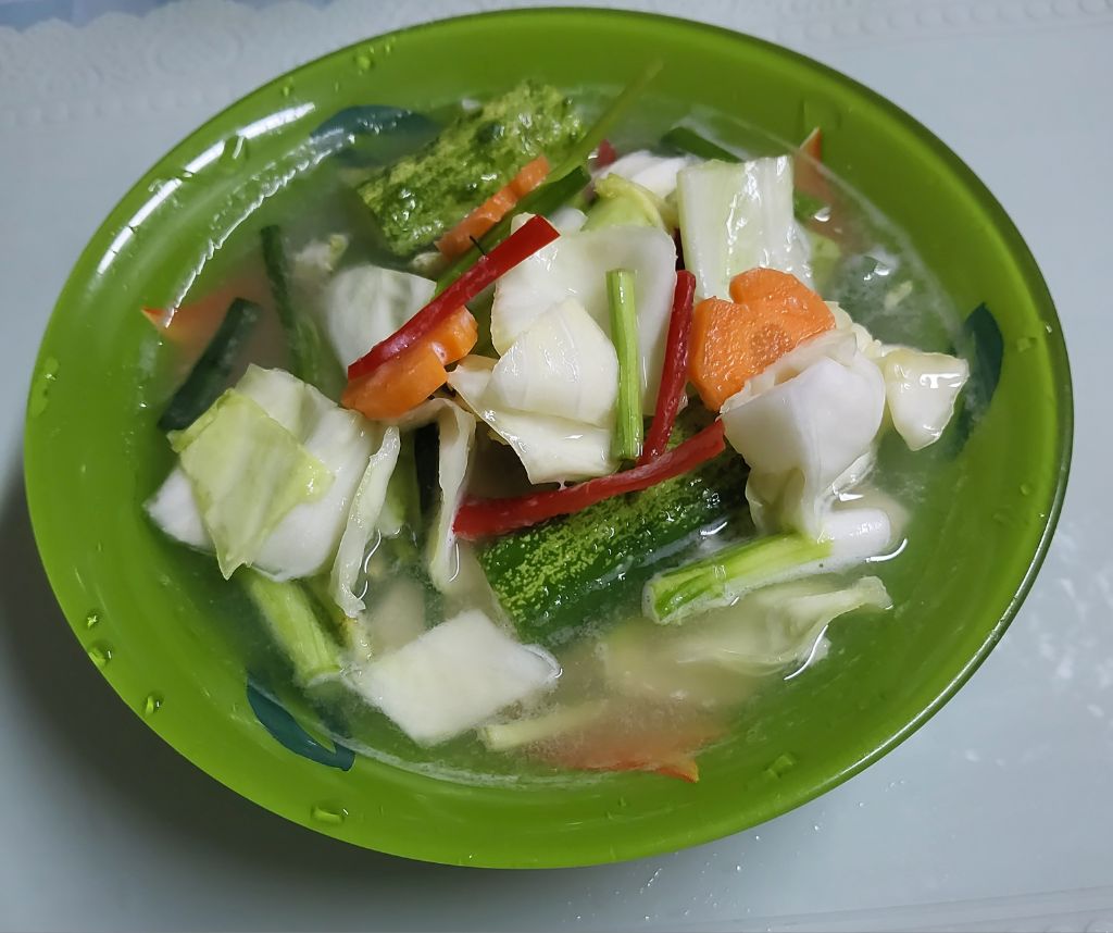 아침에 냉장고에 넣어놓고 저녁에 꺼내보니 양배추 오이 아삭하고 국물 맛이 정말 시원하고 상큼하니 맛있어요 ㅎㅎ
