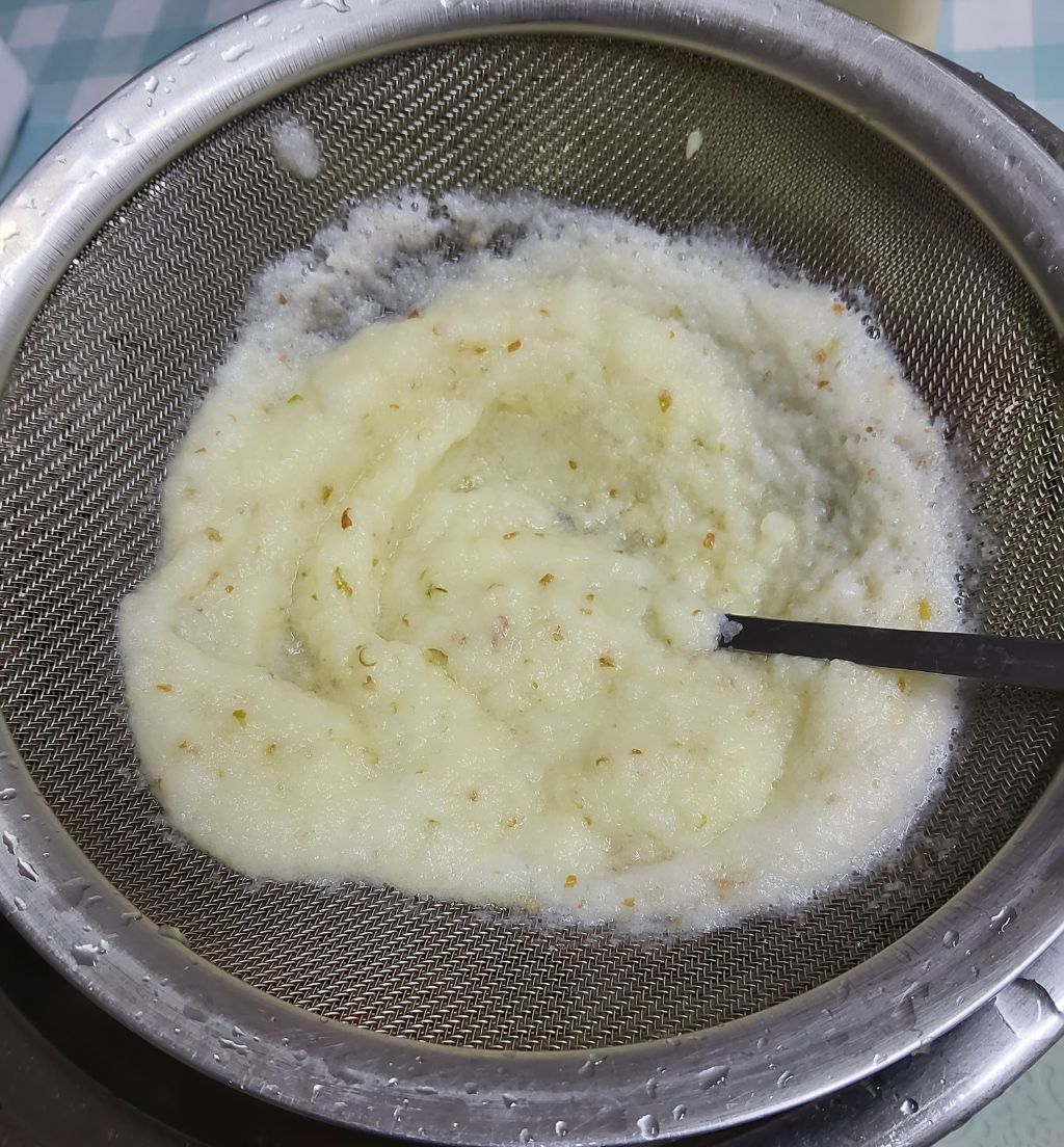 갈아 놓은것 그냥 넣어도 좋지만 생수를 부어가며 망에 걸러줍니다