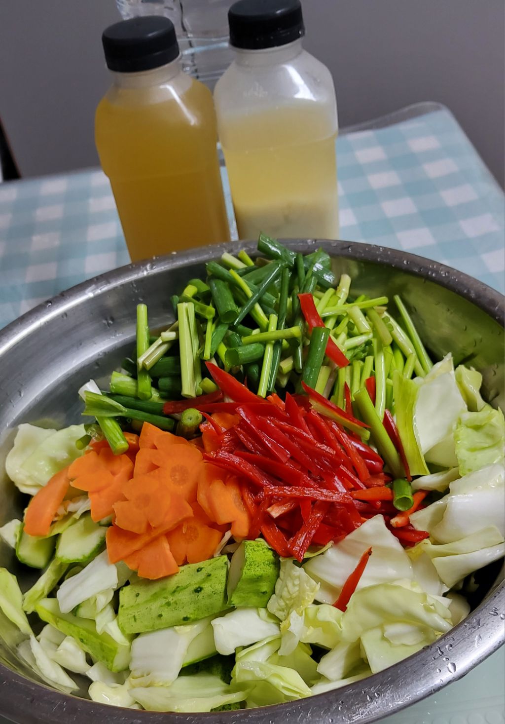 당근소량 ,청양 홍고추 4개,알배추 자투리 처리 활용