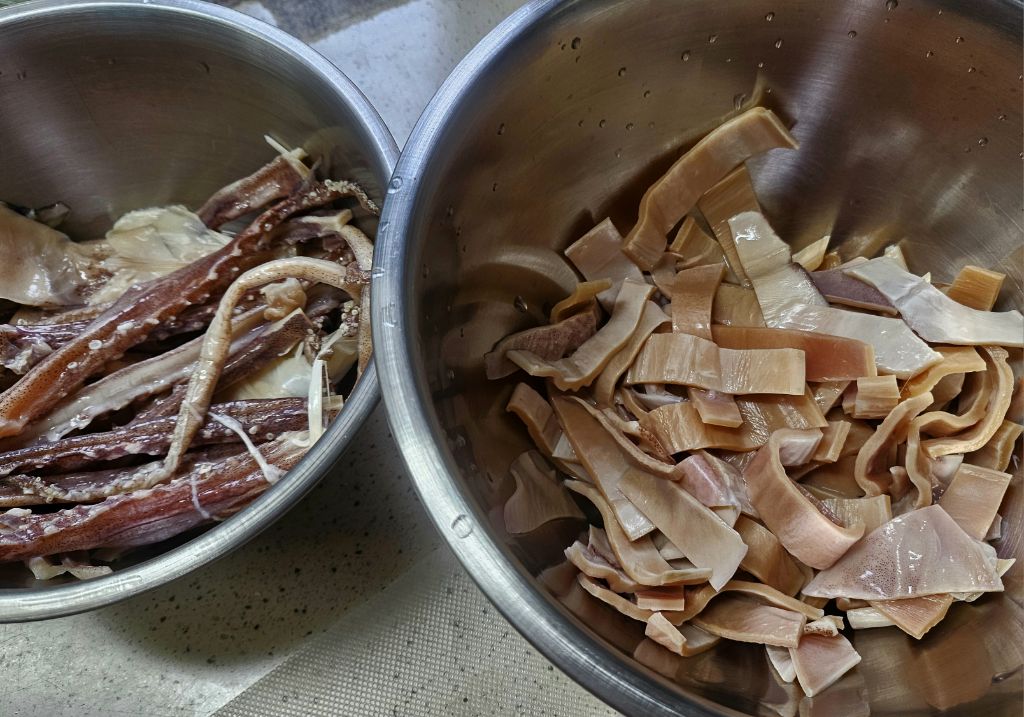 불린 오징어 넣고