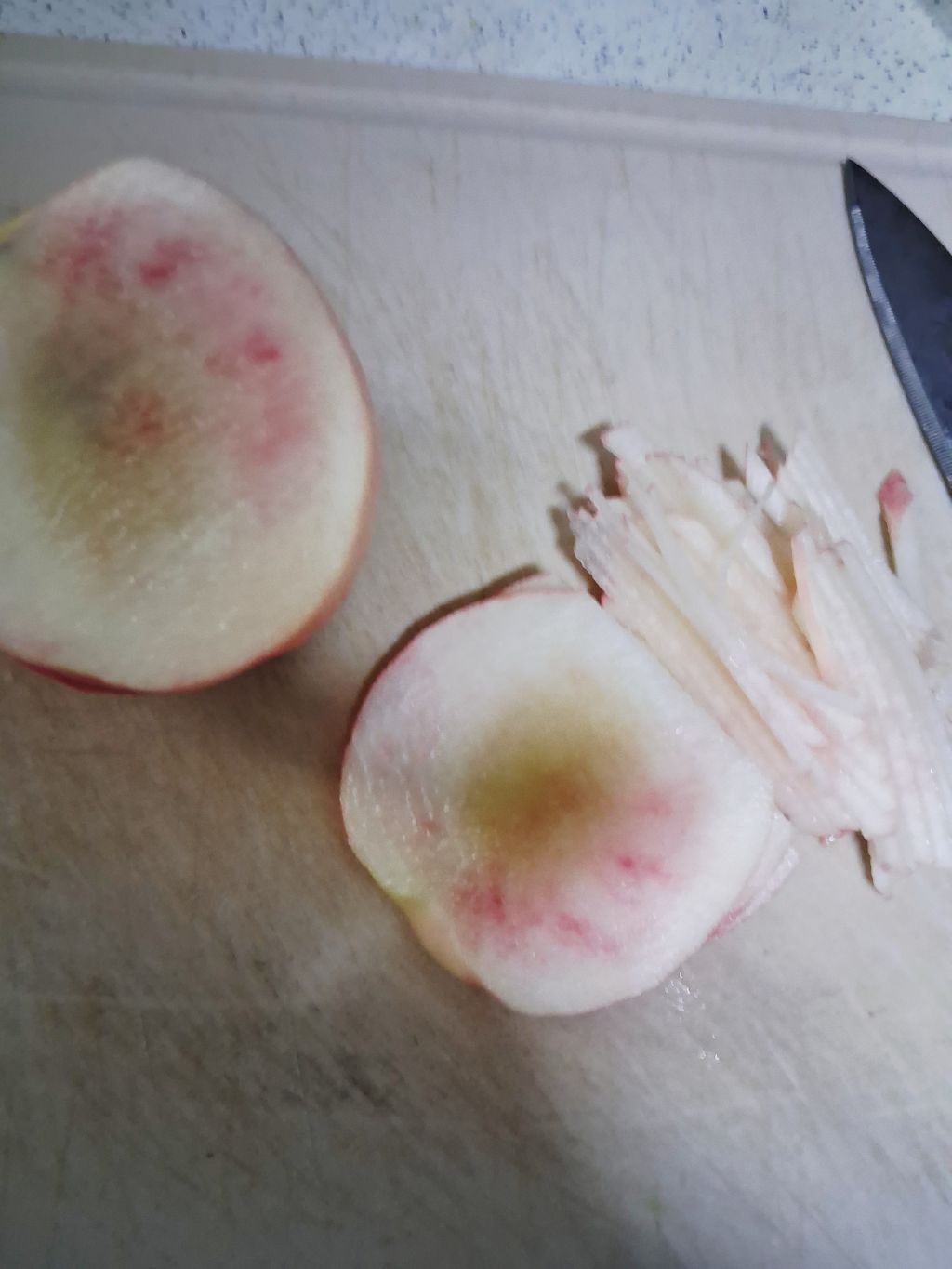 고명으로 올릴 복숭아 째썰어서 준비했어융...
