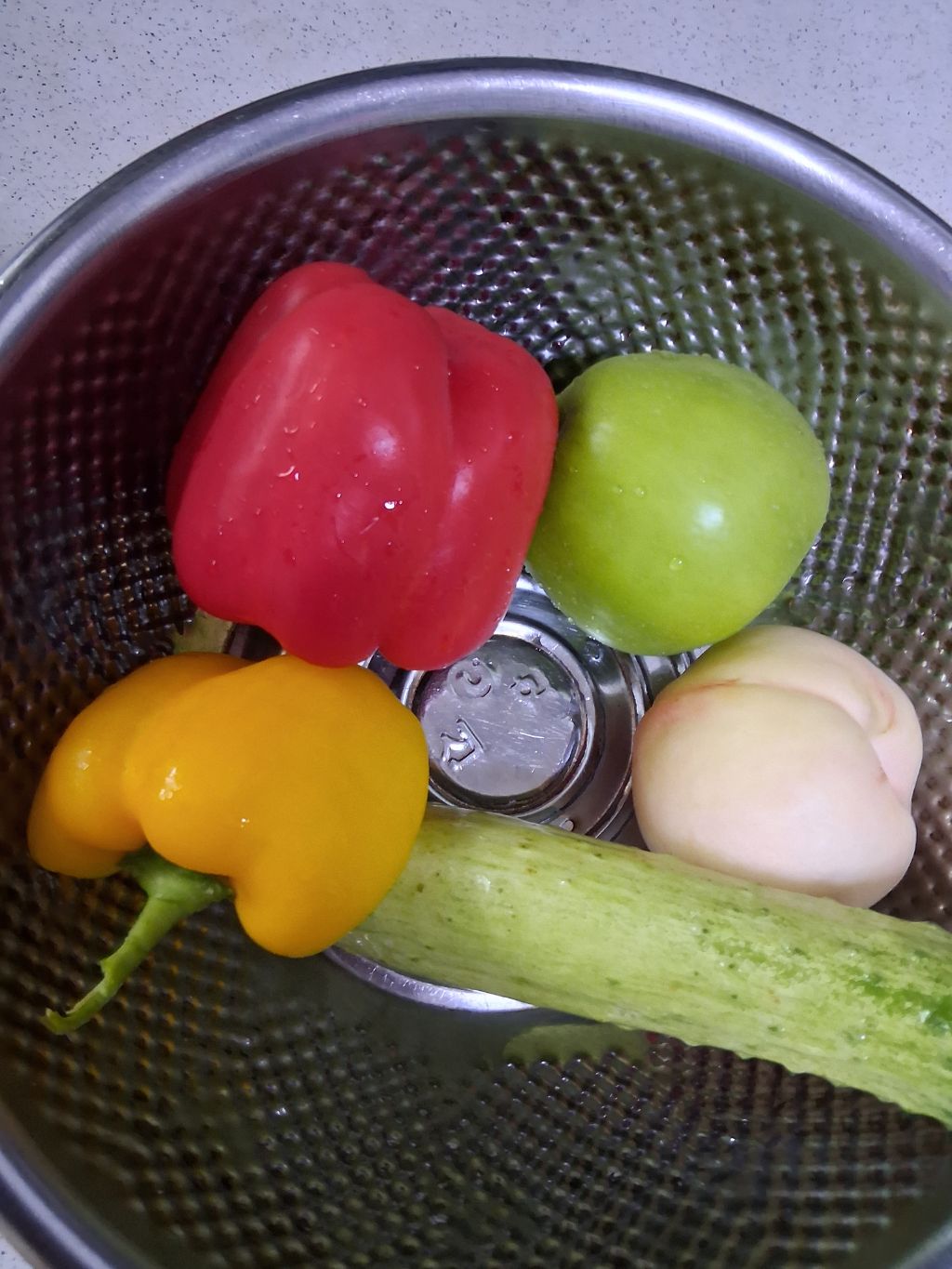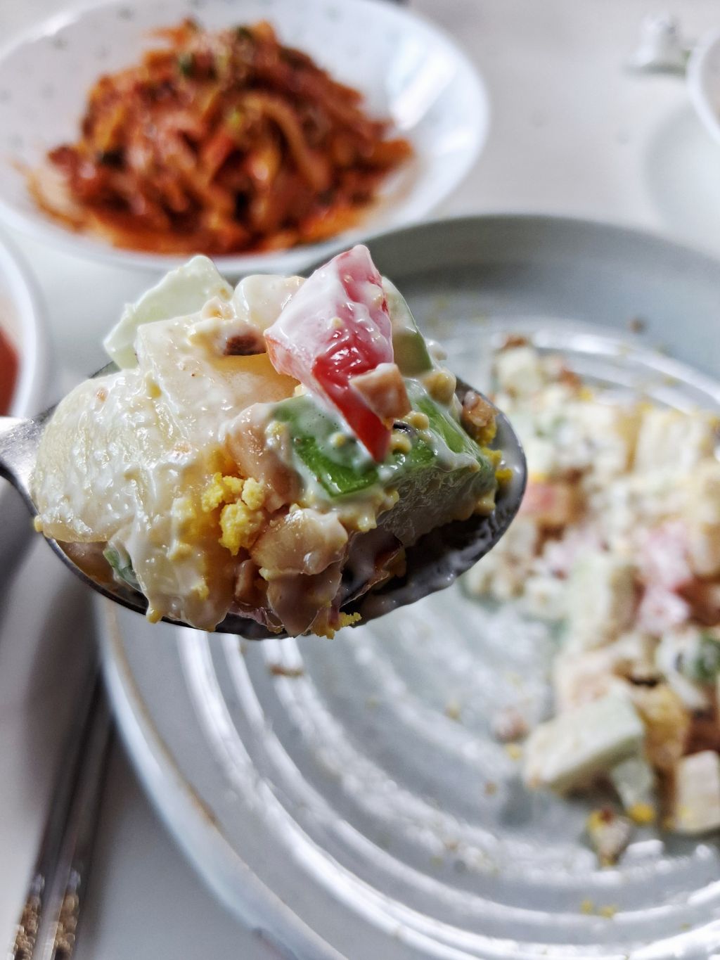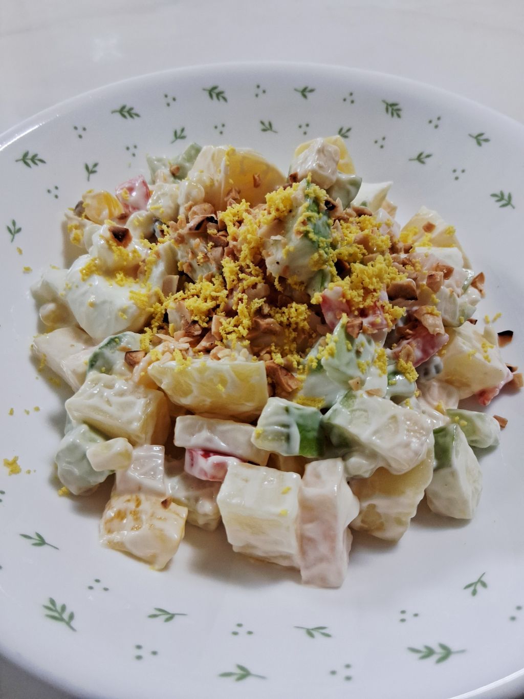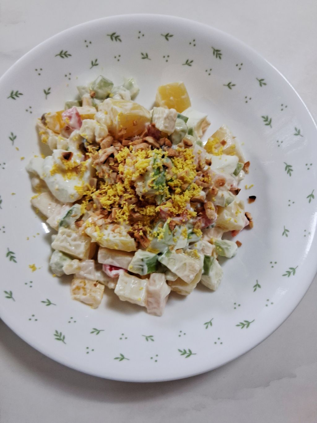 ♡재료;감자 옥수수 사과 복숭아 오이 땅콩 홍파프라 노란파프리카 계란 마요네즈...