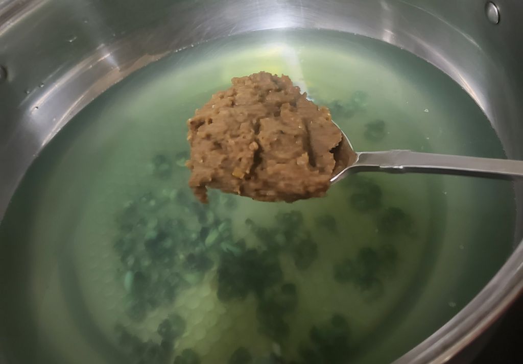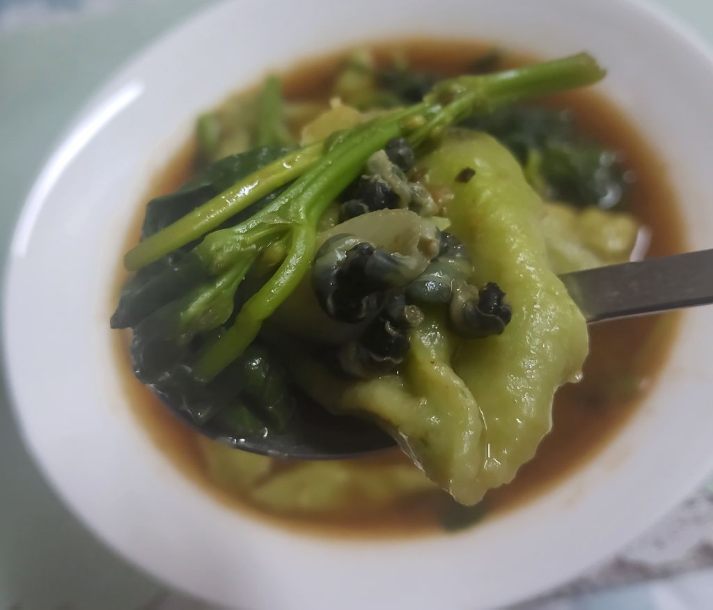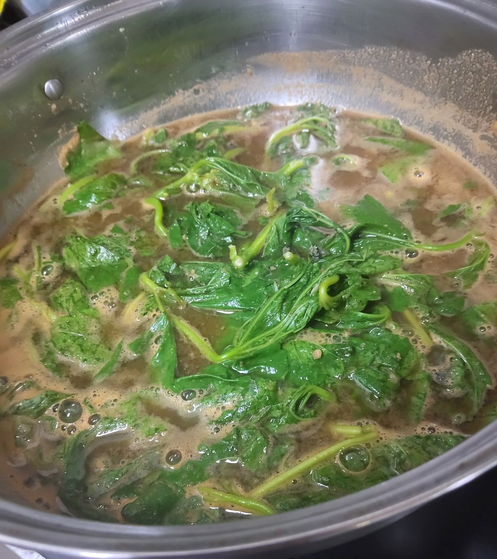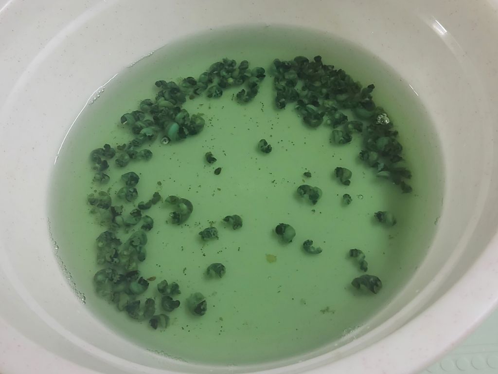 괴산 청천으로 야유회갔을때 한줌 채취해온 올겡이를 해캄시켜 삶았더니 파릇한 육수물이 ᆢ