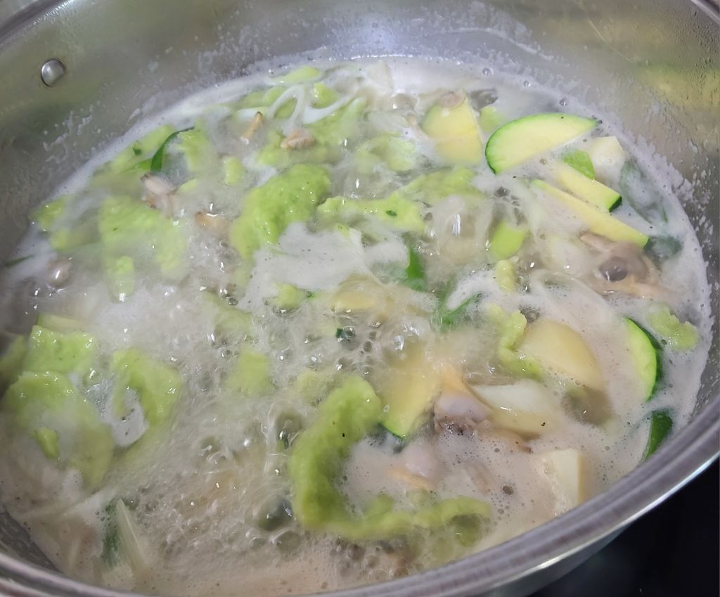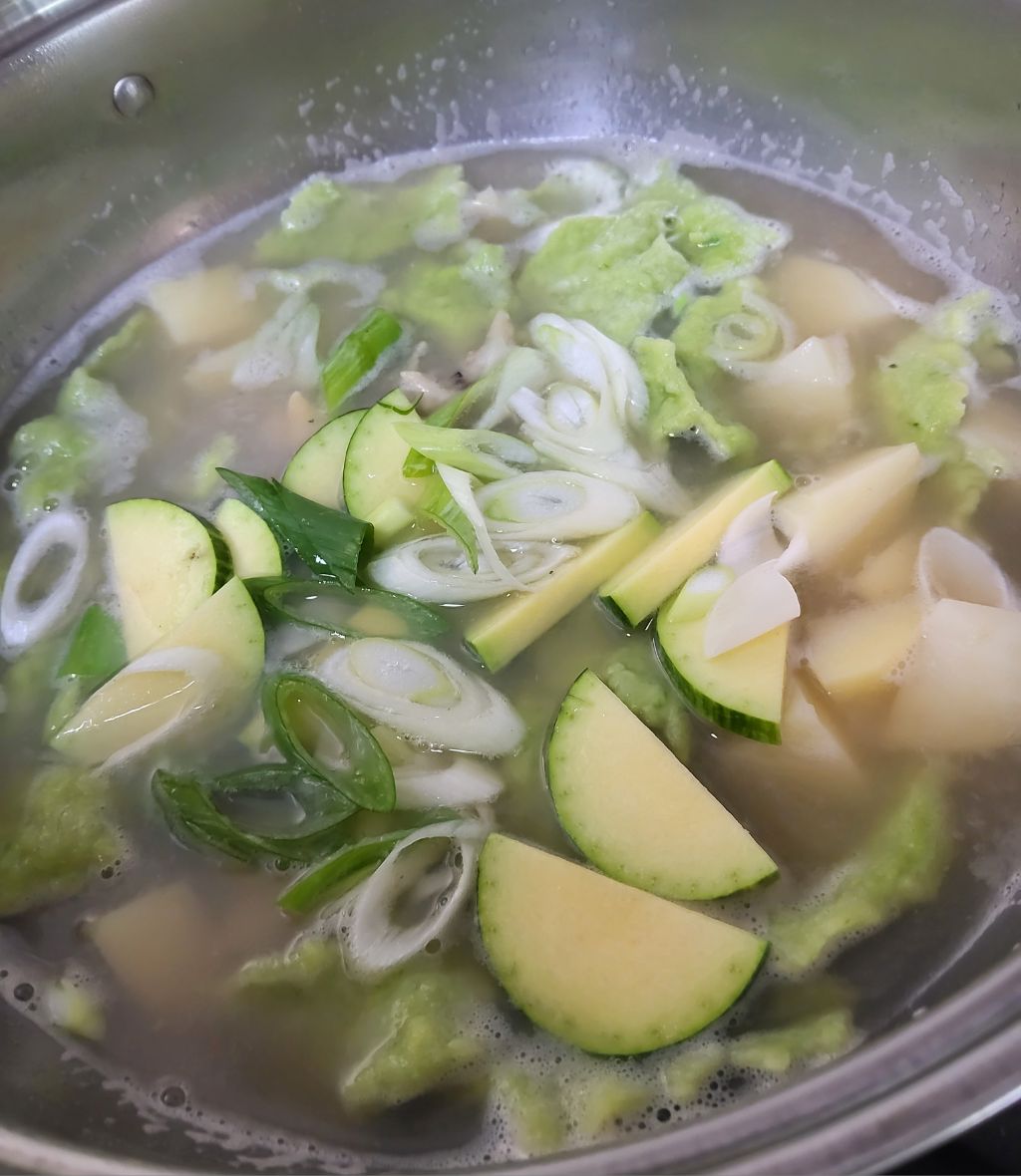 애호박 대파도 넣어주고 수용맘님 누룩소금 2스푼,천일염 1T 마늘 1스푼 후추톡톡 생강술 반스푼 넣고 끓여줍니다
