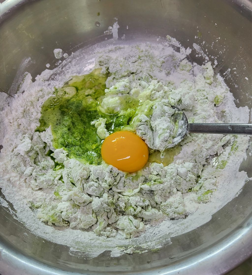 밀가루 300g정도에 부추갈은 물과 계란1개를넣고 반죽을해줍니다