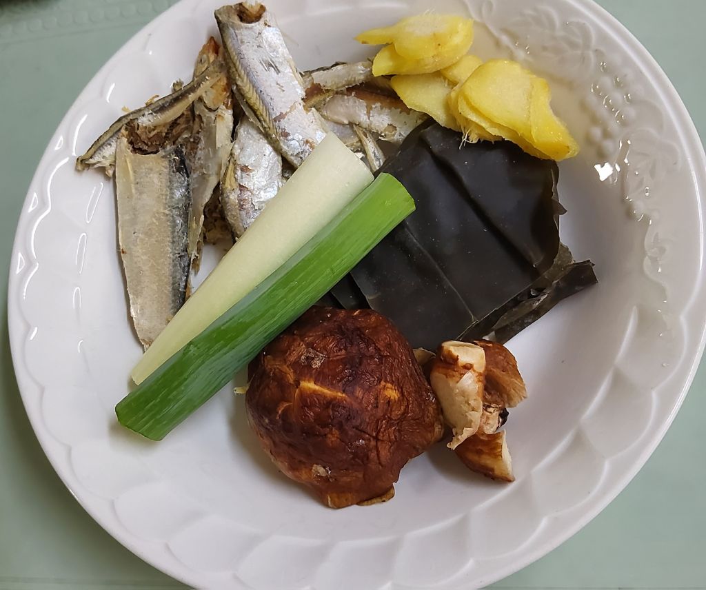육수를 내기위해 있는재료 디포리 다시마 표고버섯 생강 대파
