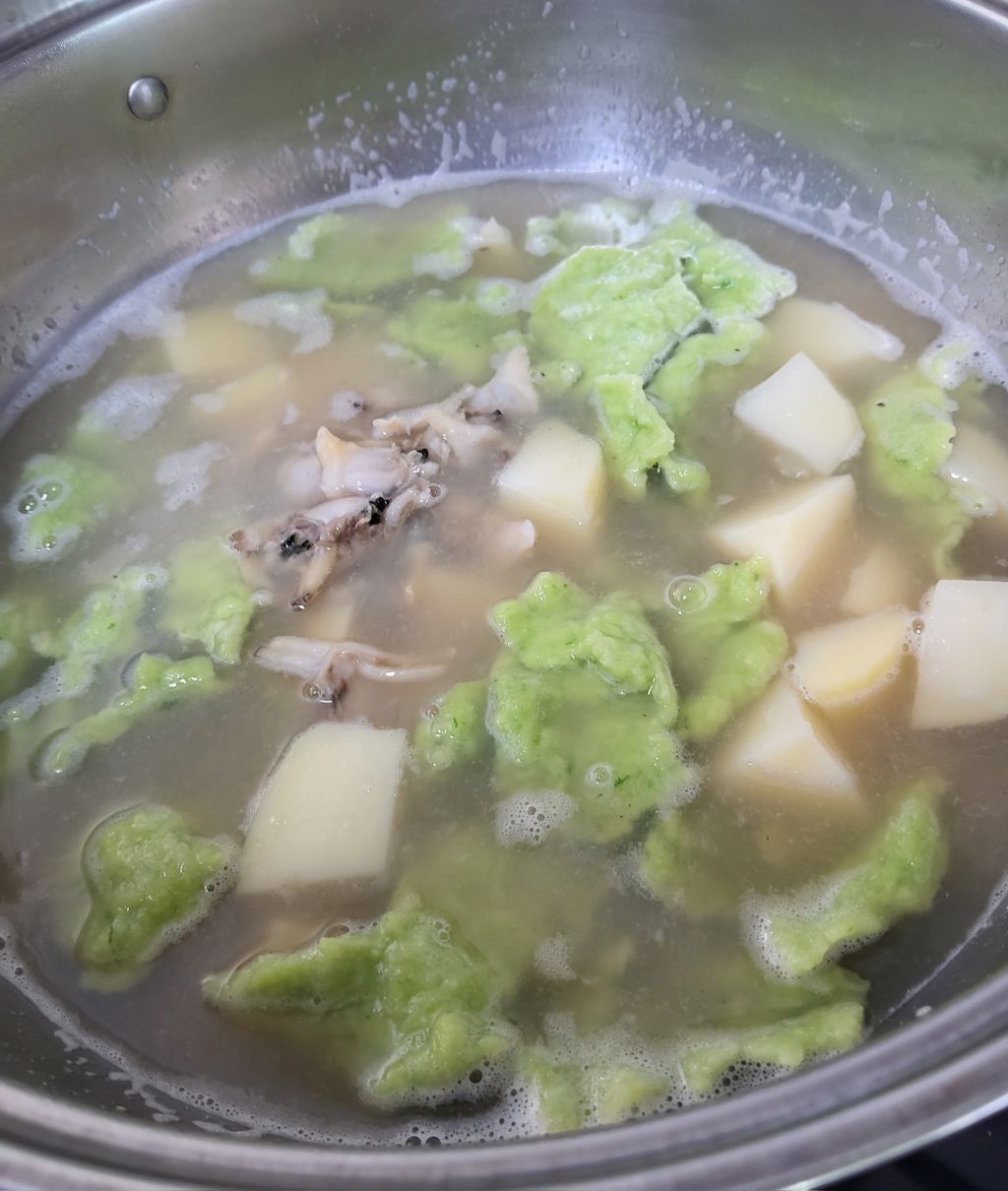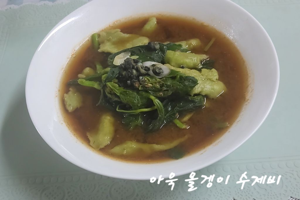된장 올겡이 베이스에 아욱건져먹는 맛 수제비 쫀득함 된장국물맛도 시원하고 맛있어요 ~~