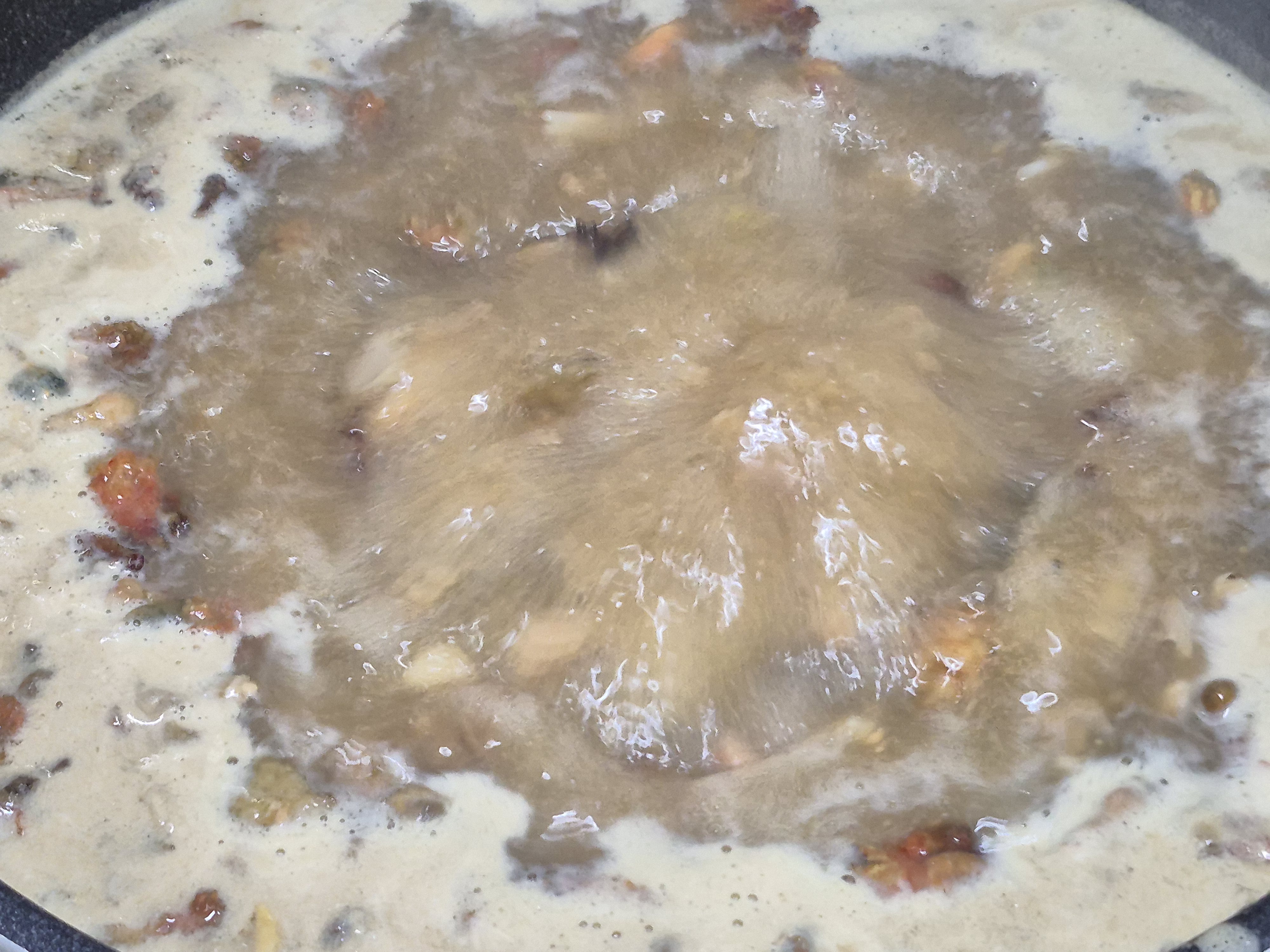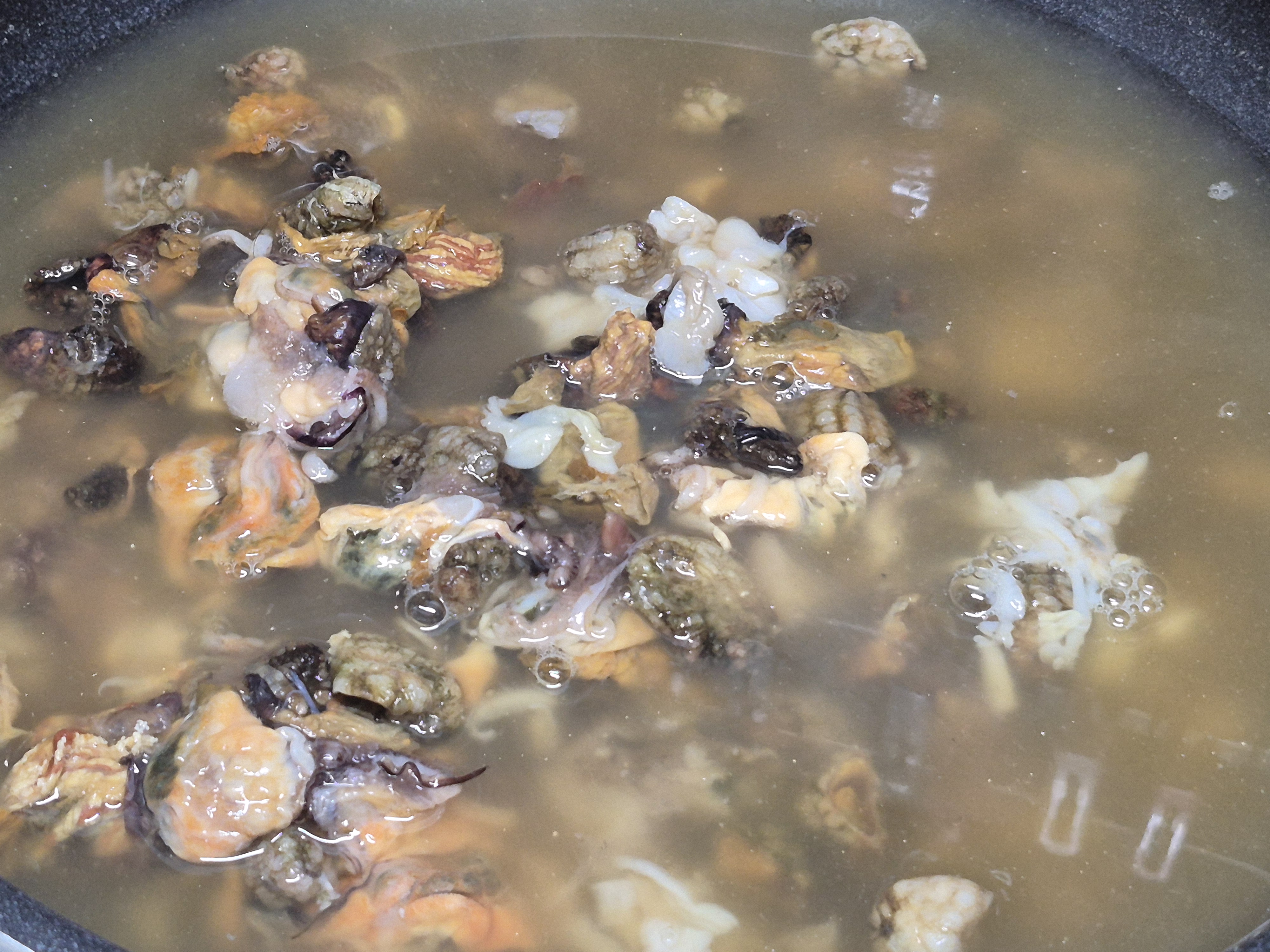 해물들이 팔팔끓을때 불순물은 걷어내어 줍니다