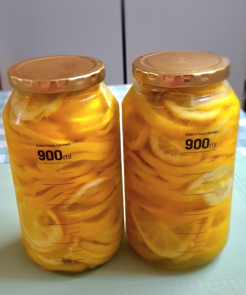 냉장보관으로 3개월쯤 되니 이렇게 예쁜색감으로 새콤달콤 맛들면서 레몬청이되었어요 ㅎㅎ