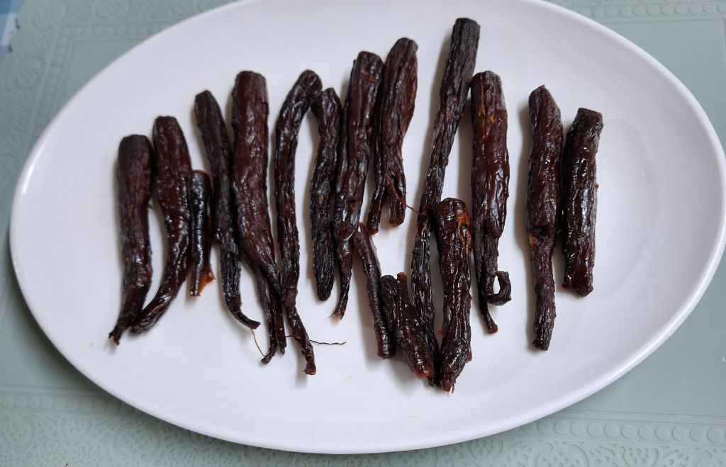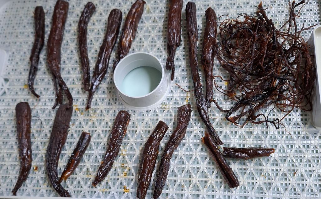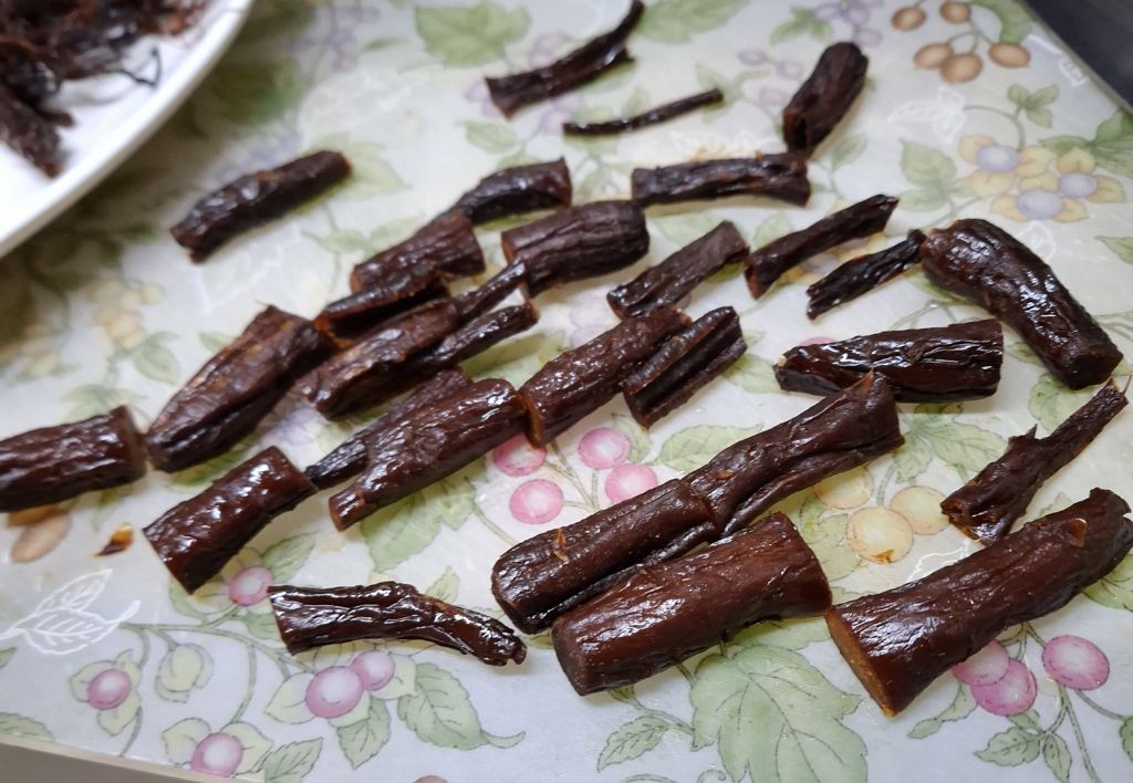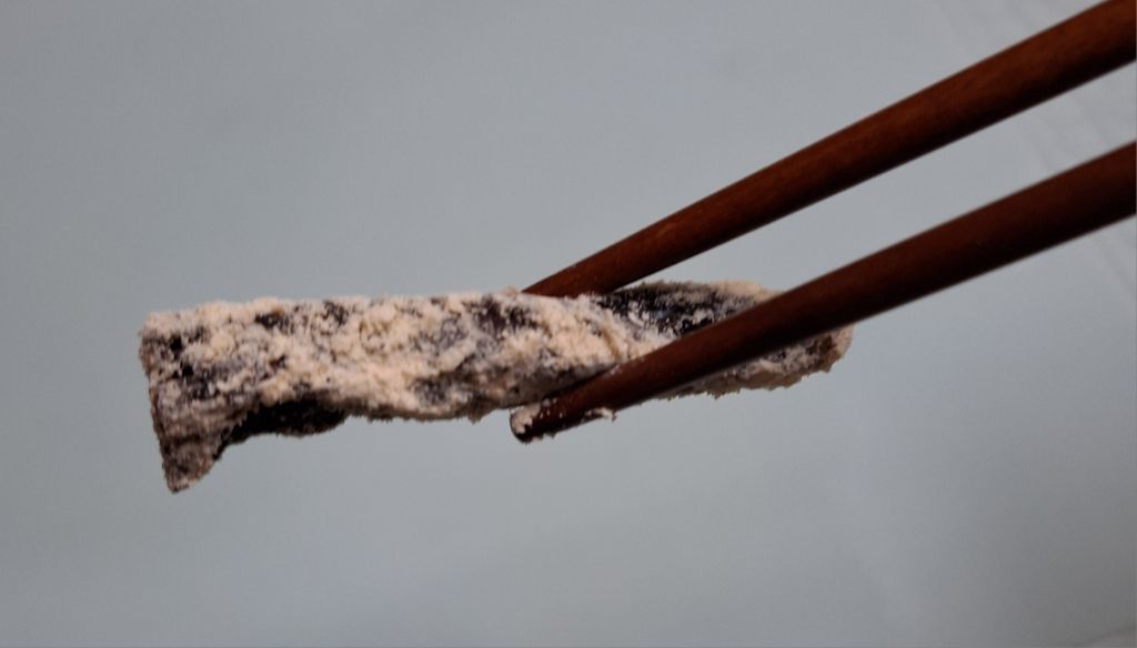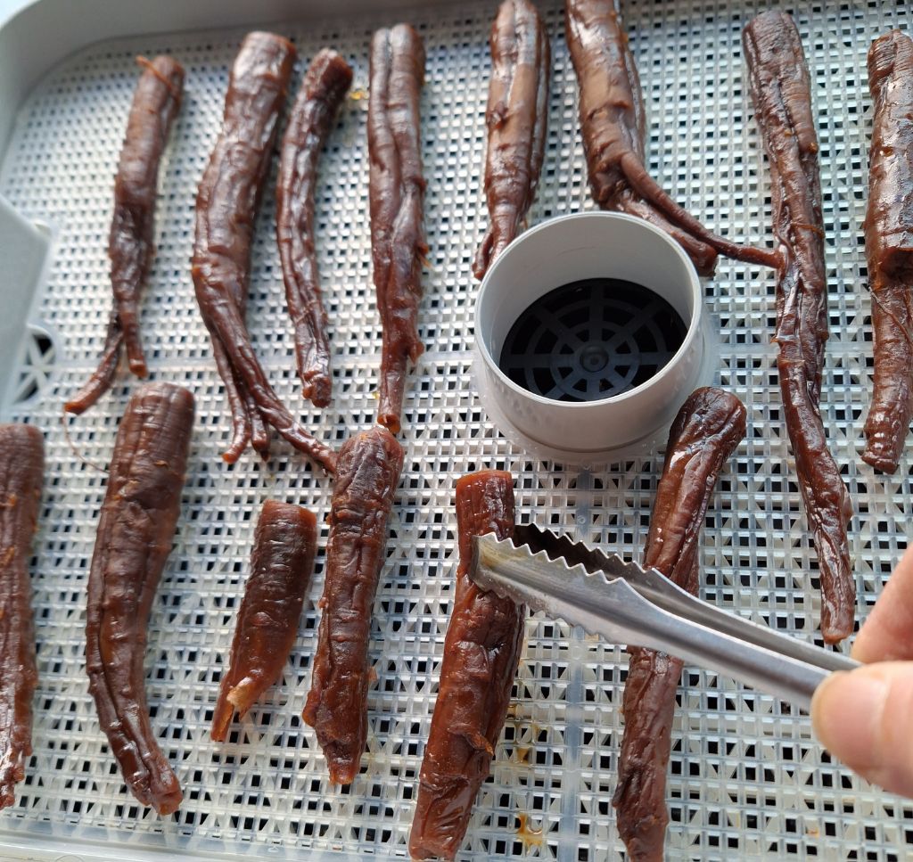 2시간 건조했어요 너무 시간을 길게 말리면 딱딱해 질 수도 있으니 두시간이 딱이예요 쫄깃한 식감과 절리처럼 꾸덕한 상태
