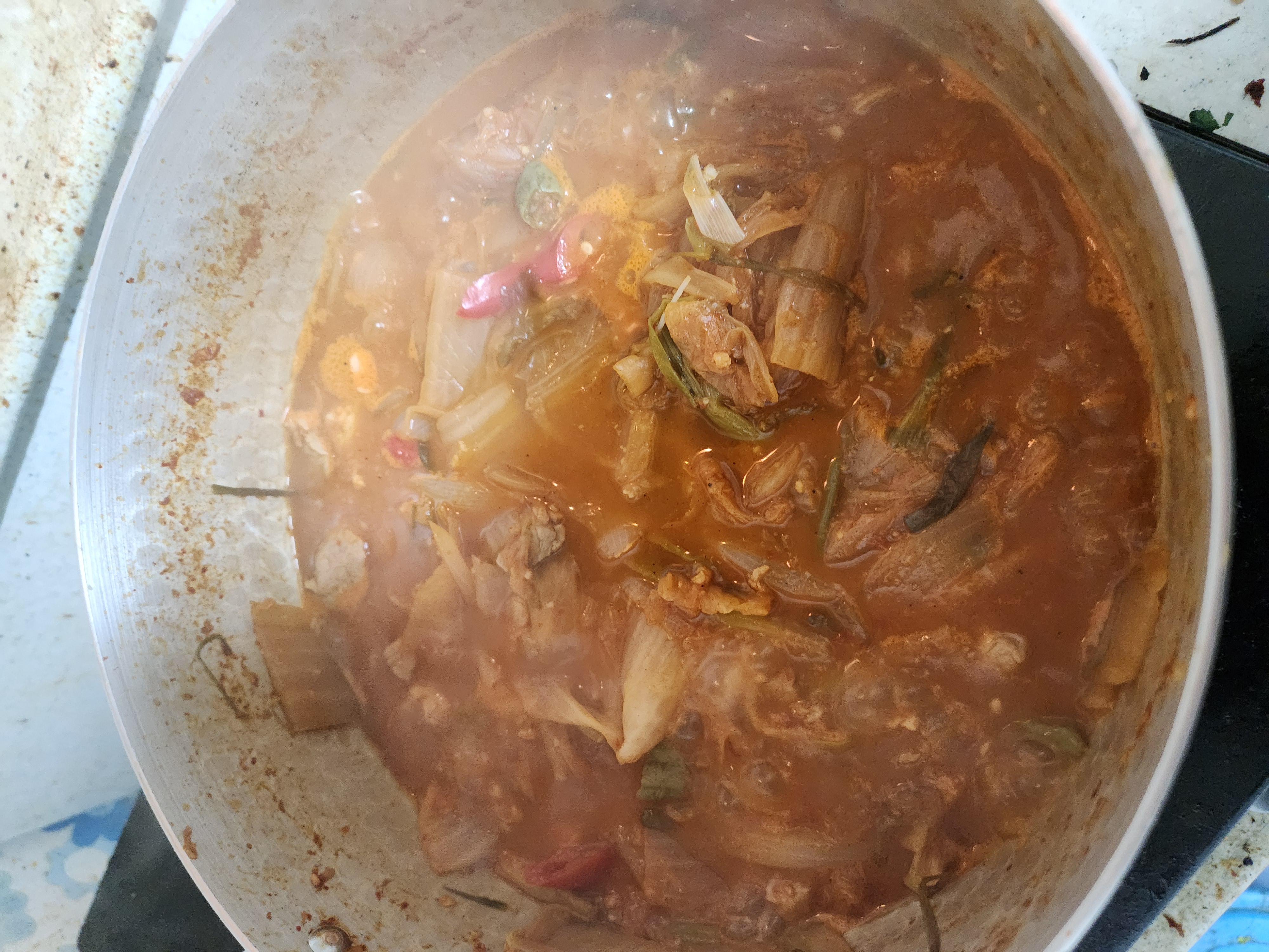 한술갈 넣고 김치 국물 붓고 끼립니다