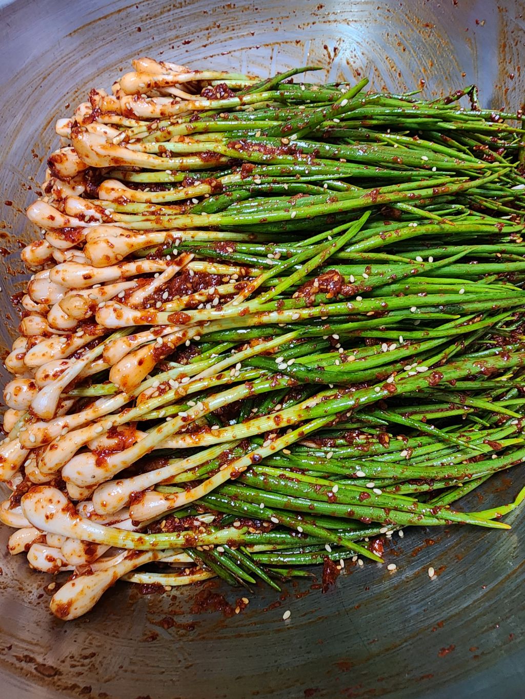 해마다 파에 매운맛 때문에 찹쌀풀 대신 조청으로 하다가올해는 찹쌀풀 끓여서 했답니다
