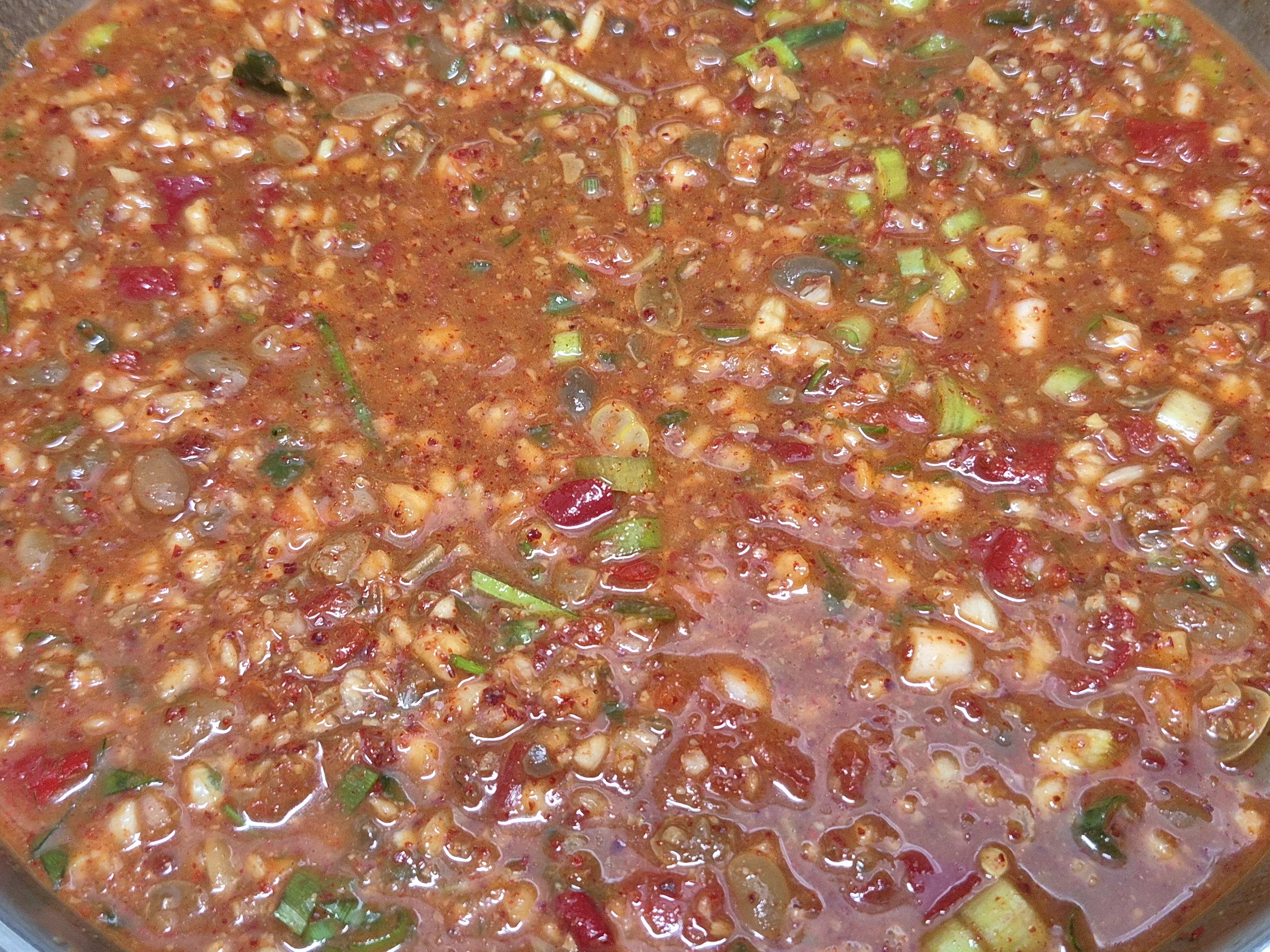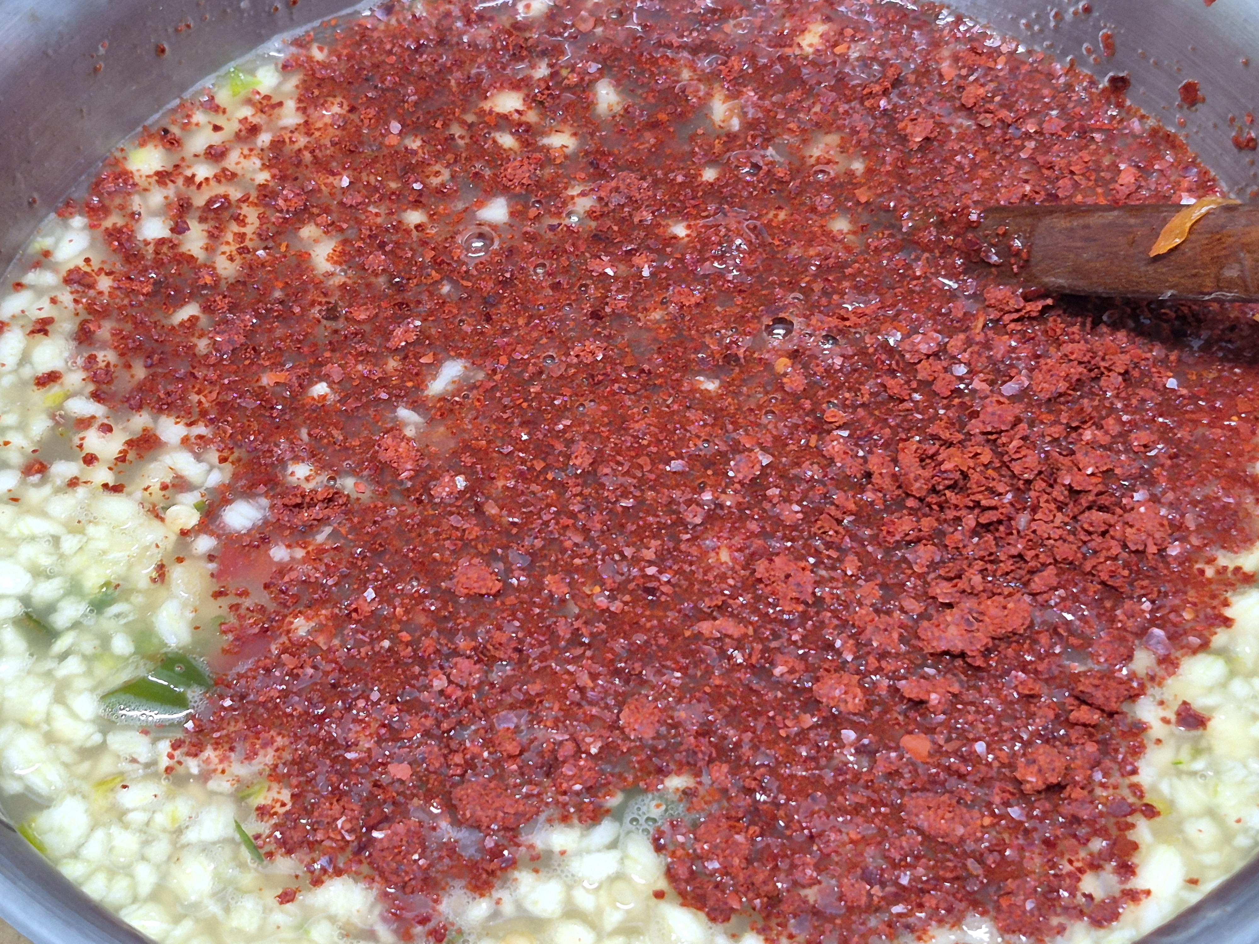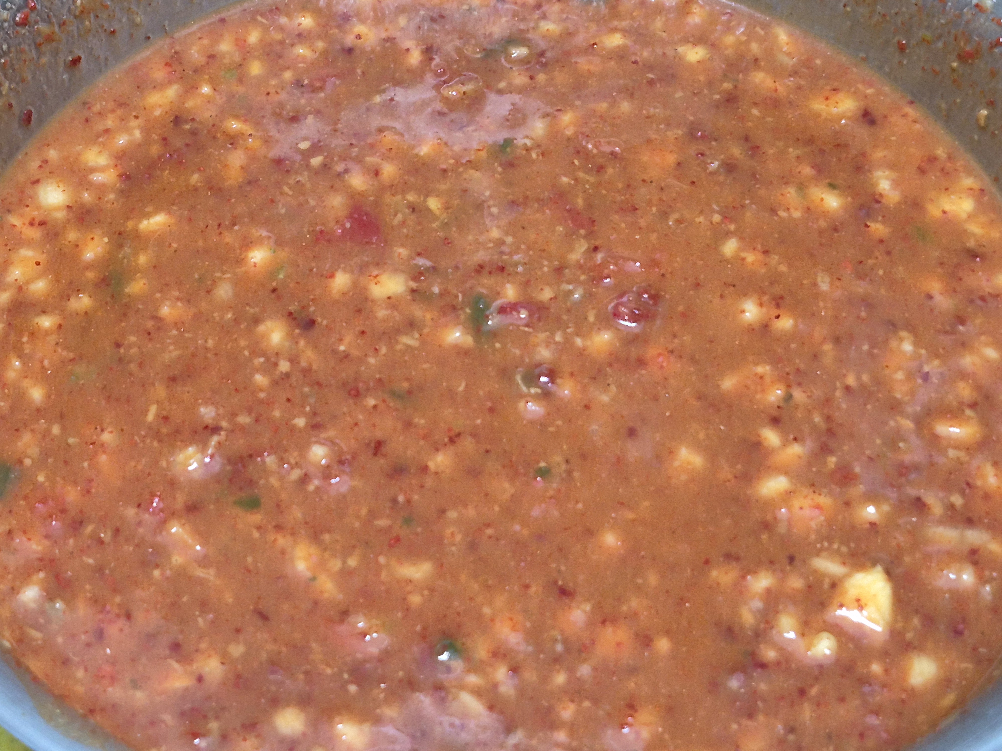 된장 간마늘 생고추 갈아 얼려놓은거 고춧가루 넣고 골고루 저어줍니다