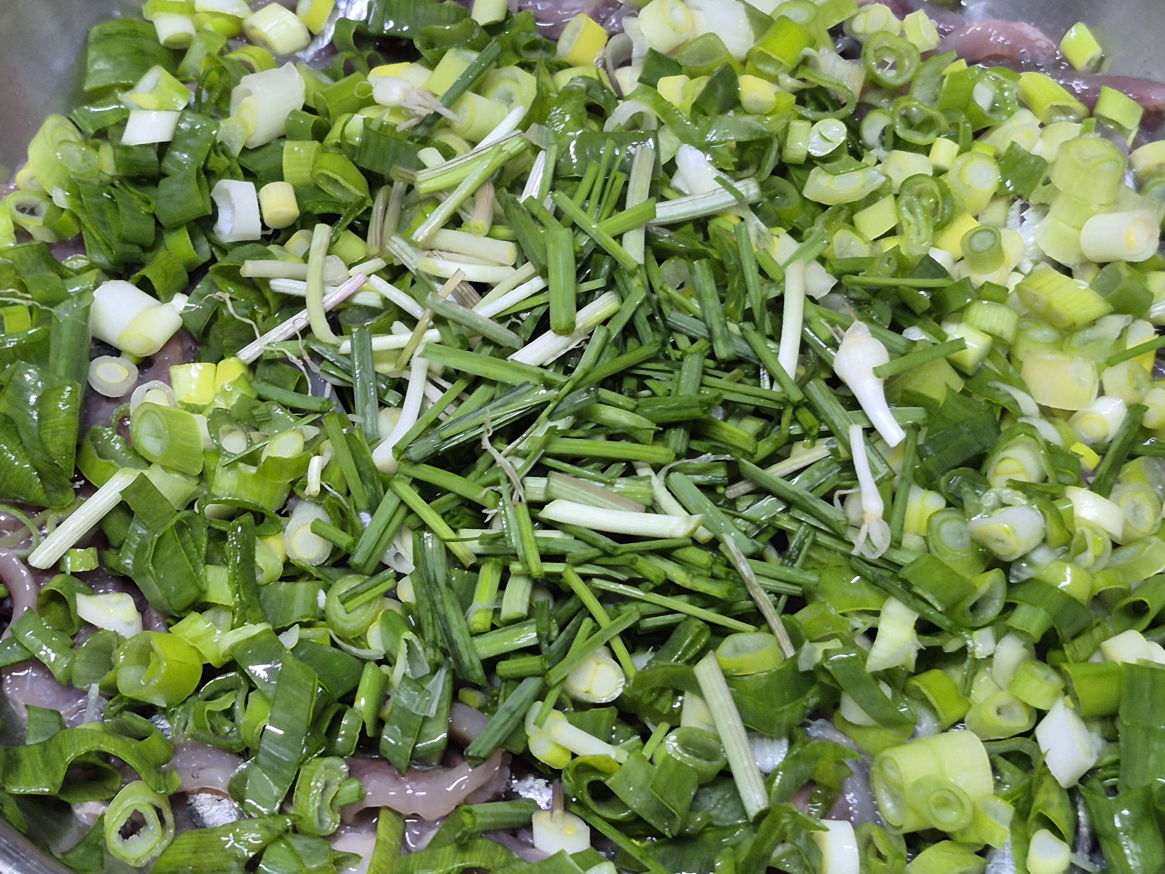 멸치위에 삼동파 달래썰어 올려주고