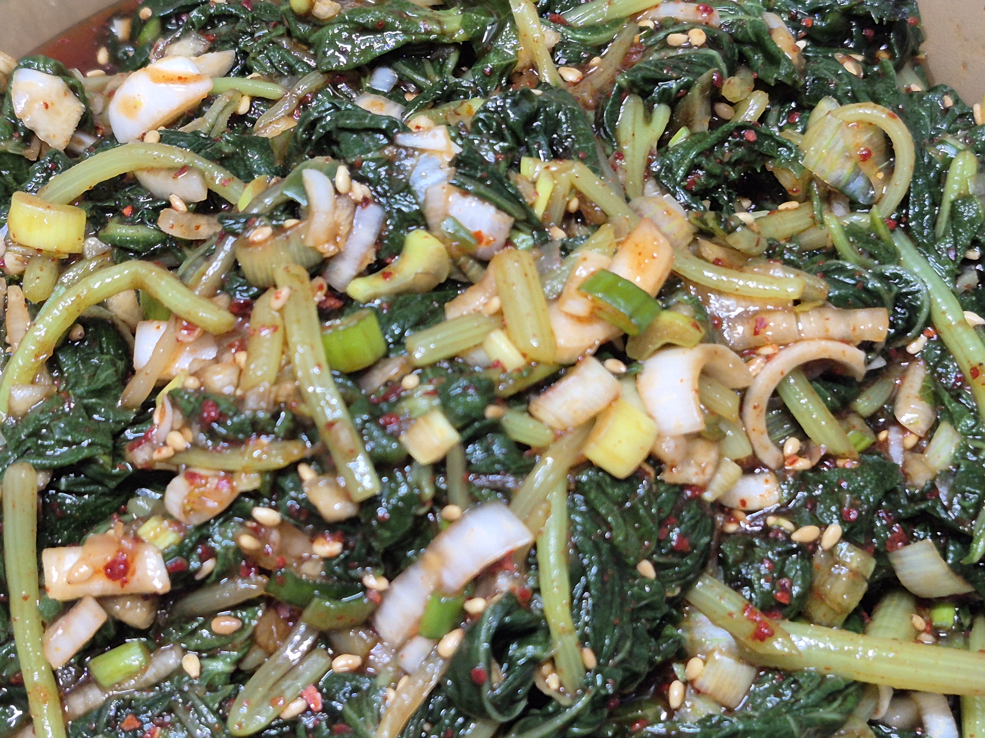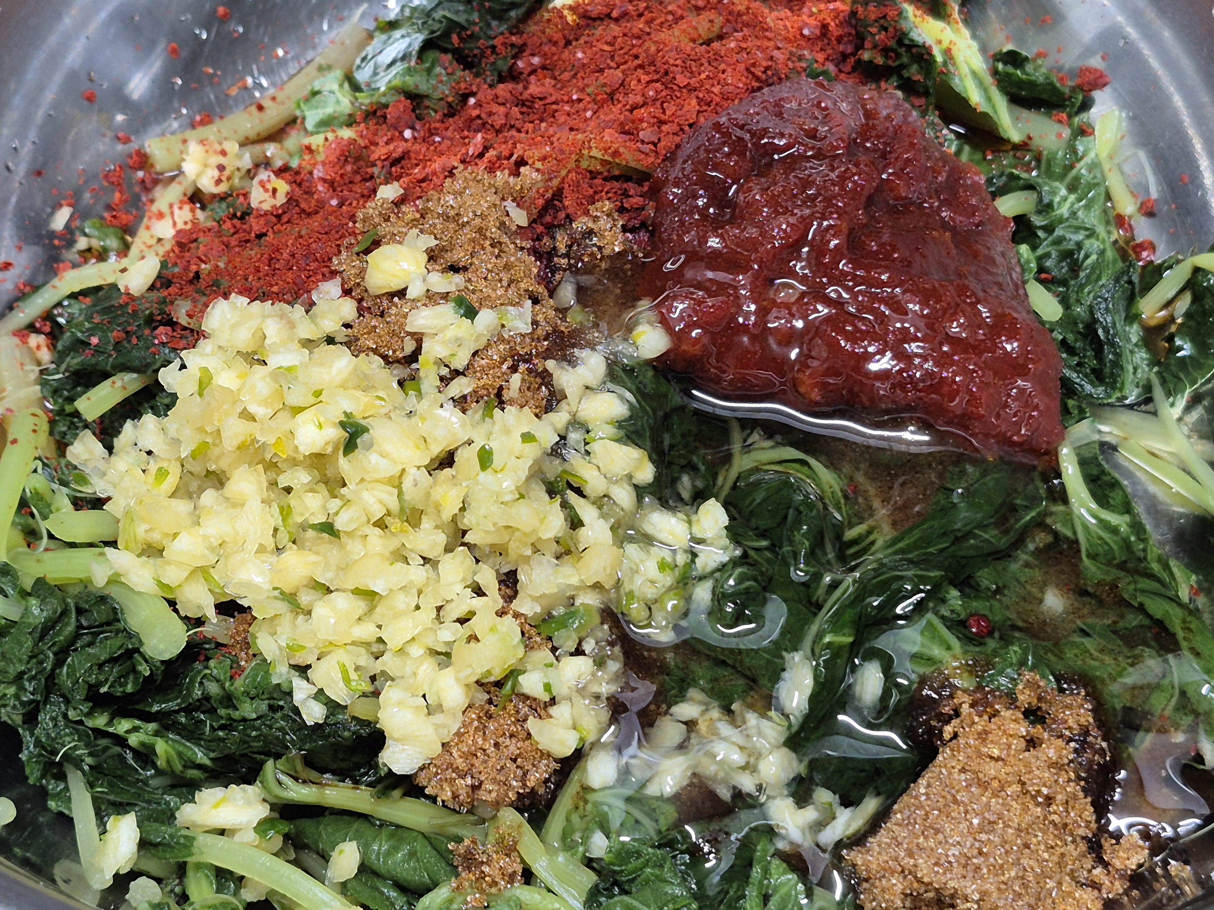 머위위에 고추장 고춧가루 양조간장. 식초 매실액 설탕 조금. 부족해서 물엿조금. 넣어주고