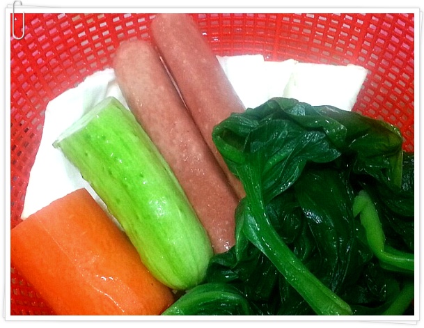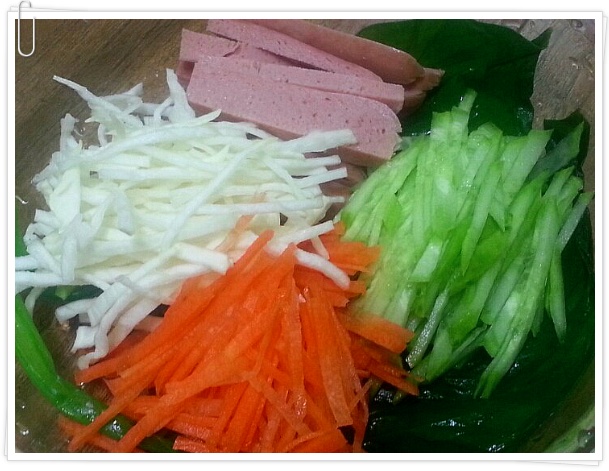 오이, 당근, 햄삶아둔것, 양배추 준비해서