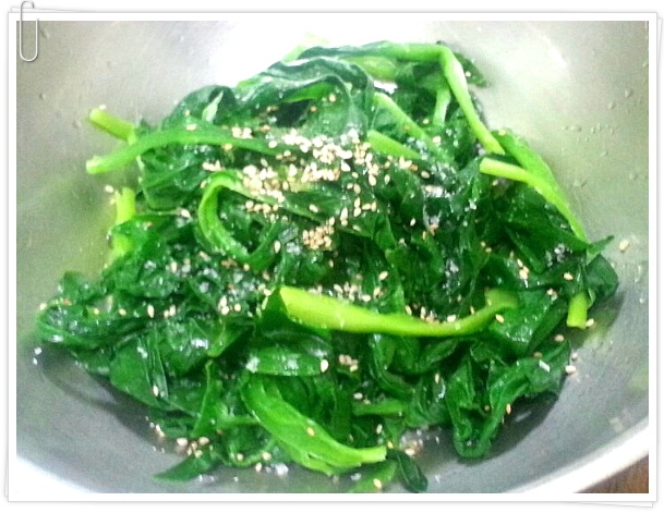 참기름, 통깨, 소금 약간 넣고 버무르듯 팍팍! 쪼물딱 해주세요~![]()