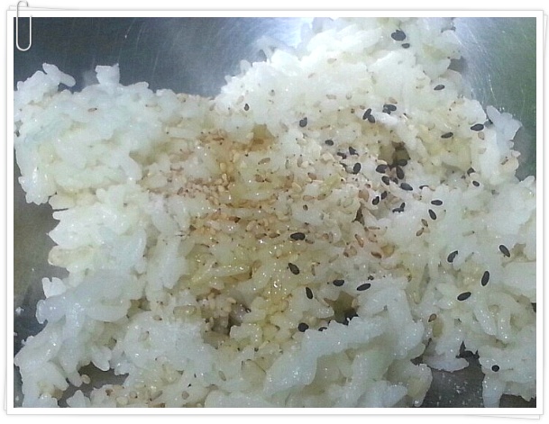 참기름, 통깨, 소금 조금 넣고~ 이제 돌돌 말아 볼까요 ?