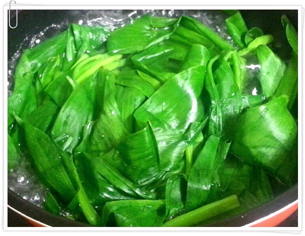 굵은 소금 넣고.. 끓는물에 명이나물 넣고