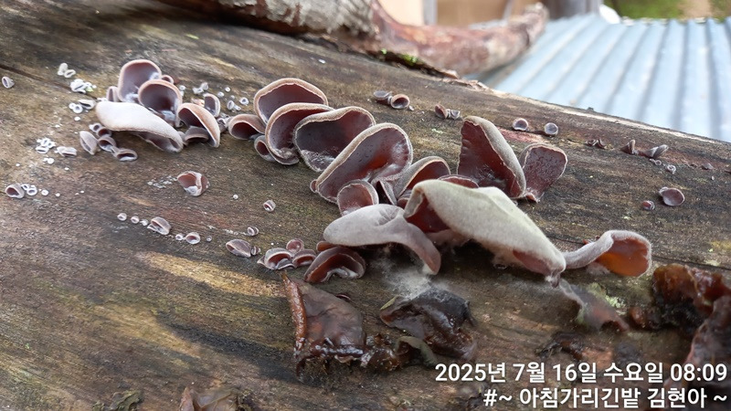 땔나무 쌓아둔곳에 목이가 올라왔습니다