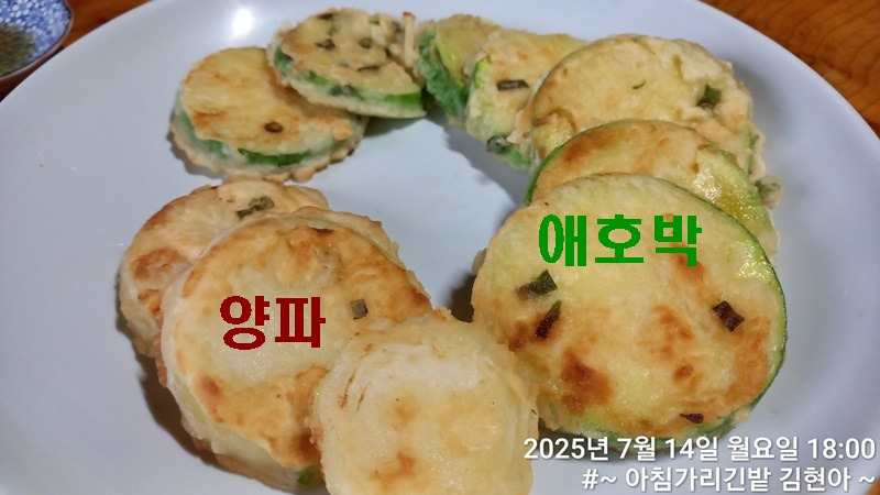 바삭하게 구워낸 애호박전 양파전 몇개를 먹으니