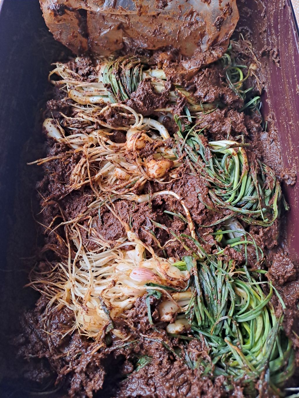 어머니가 해주시던 데로 막장에다 장아찌를 담고