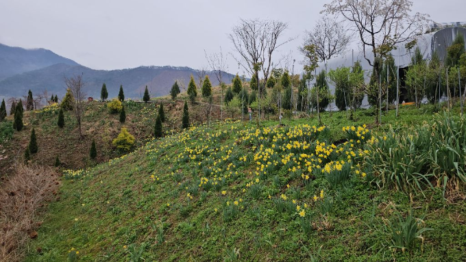 봄비가 촉촉이 내리는 자연과 조화롭게 숨 쉬는 취송원의 오늘 아침 모습입니다.