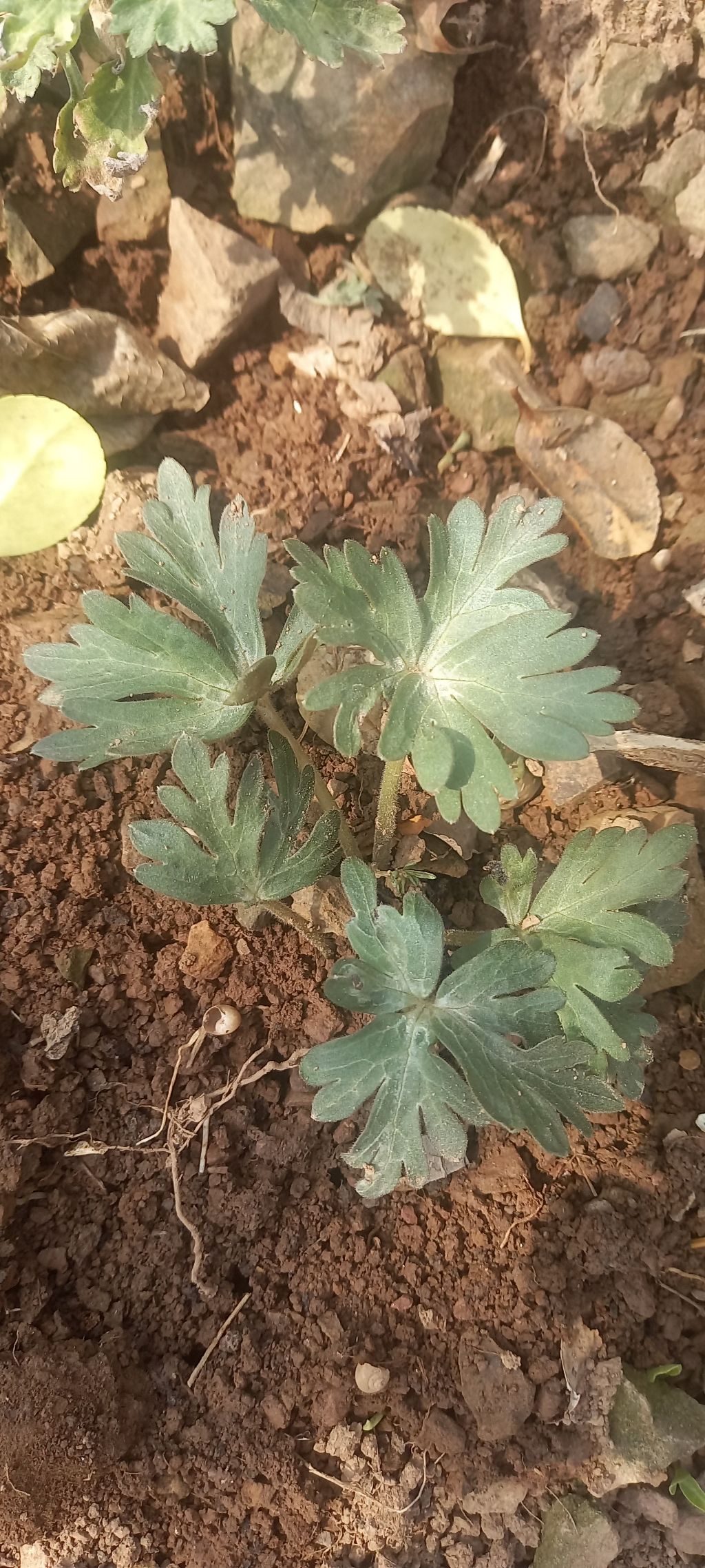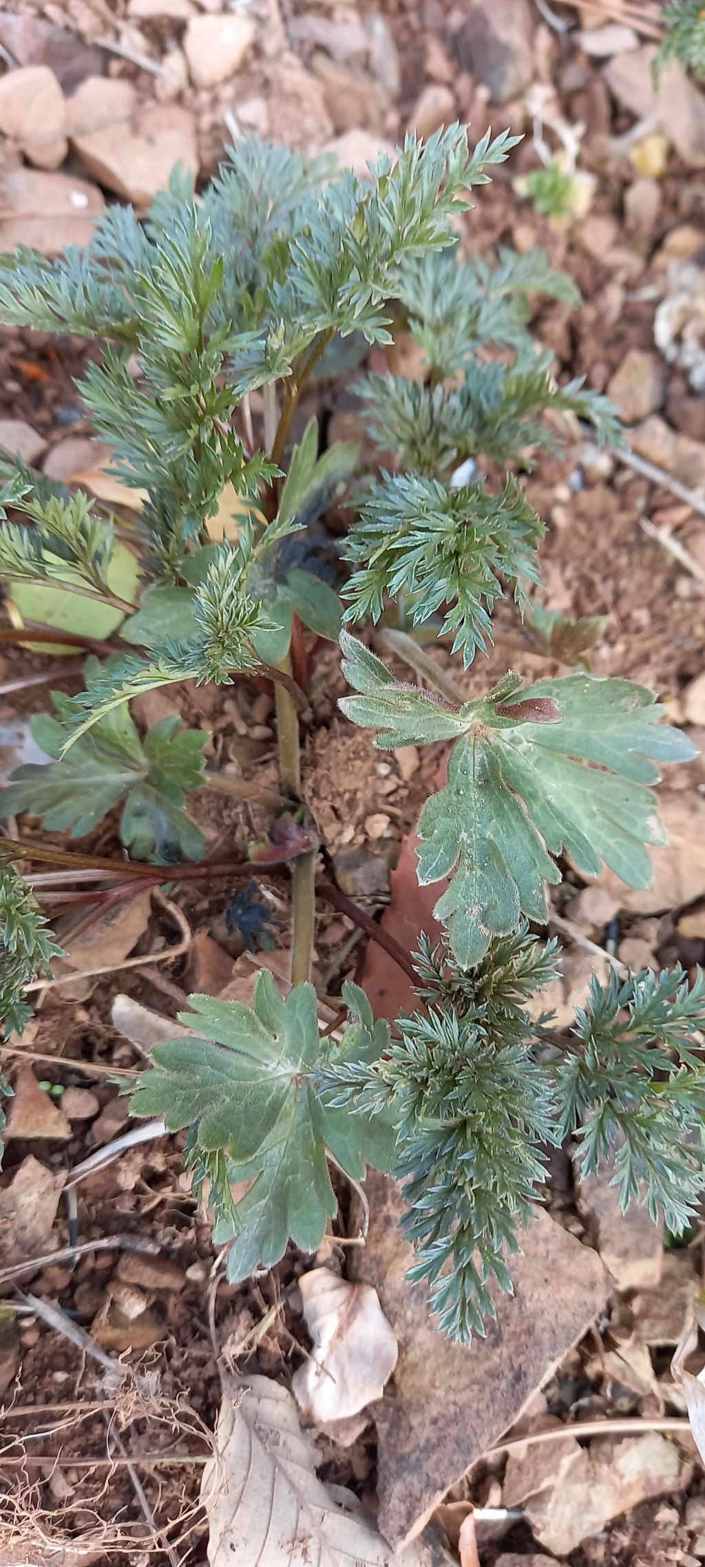 작년에 복수초 포기에 이상한 잎이 보이더니