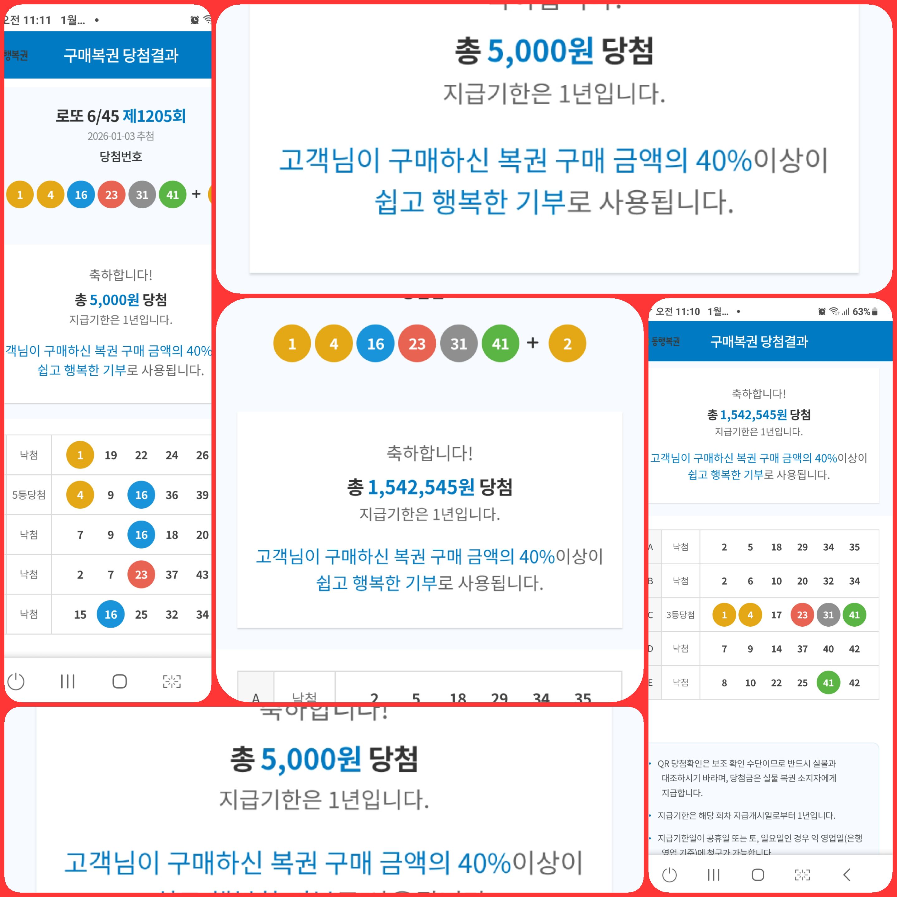 이 행운이 2등~1등으로 이어지길~~
