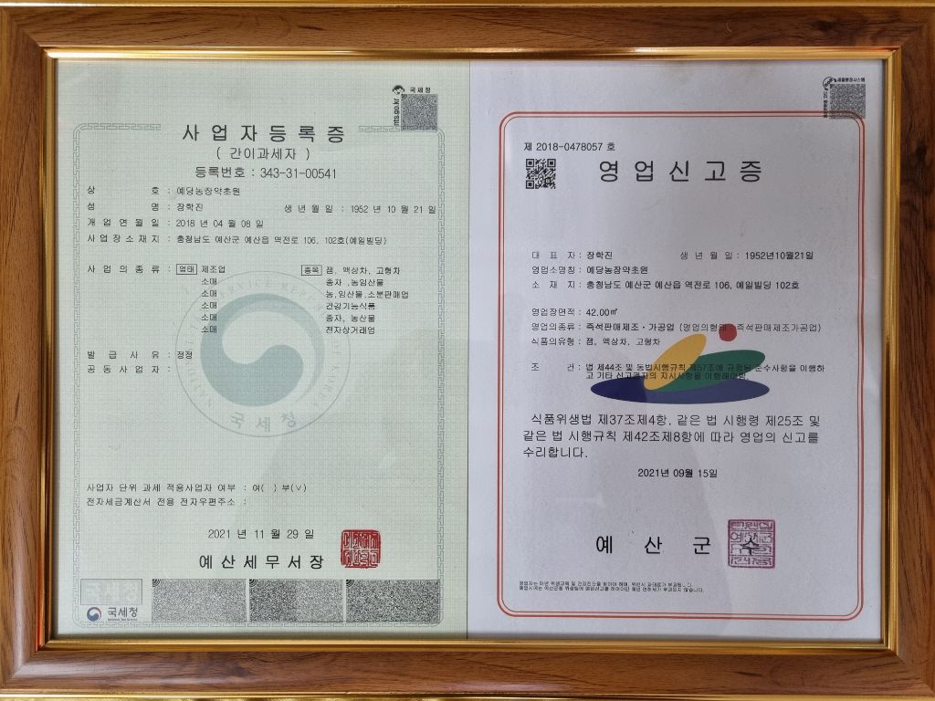 | 생산자. 수입품인 경우 수입자 | 예당농장(장학진) |
