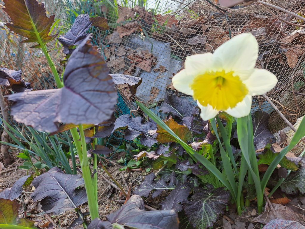 황갓의 싱싱함과 수선화의 신비함이 함께 활짝 웃고
