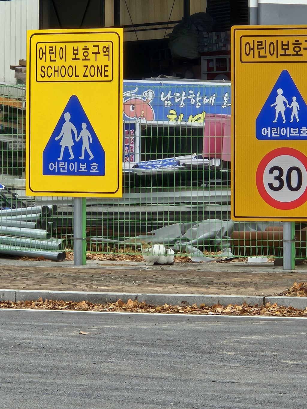 뒤에 쌓여있는 자재들이 아기냥이들 놀이터가 되더라구요