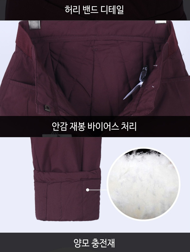그어떤 한파에도 거뜬한 온실속에 있는 것처럼 가벼우며 구김이 어뵤는 포근한 방한 방풍바지 입니다.