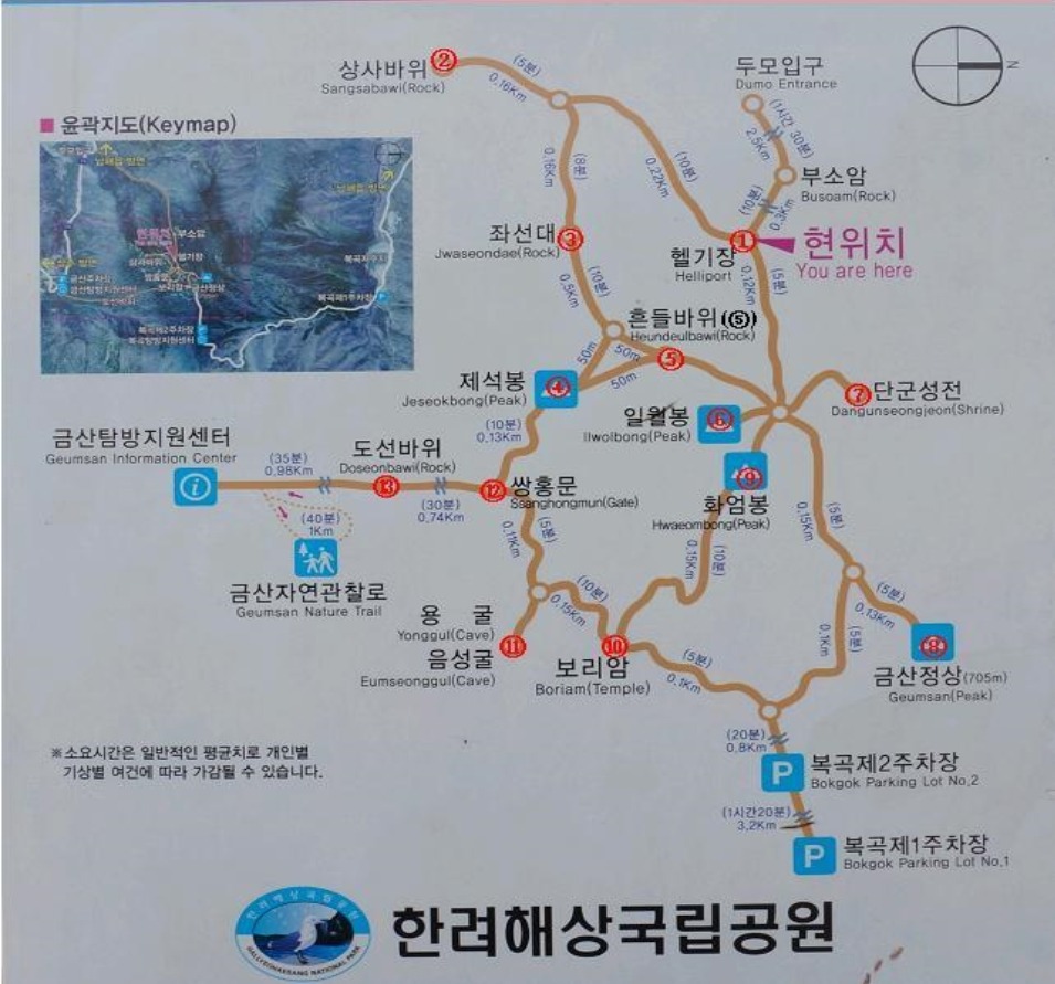 두모입구->도상 1,2,3,4,5,6,7,8,9,10,11,12,13번=>금산탐방지원센타 (약 4시간 30분) | ||||