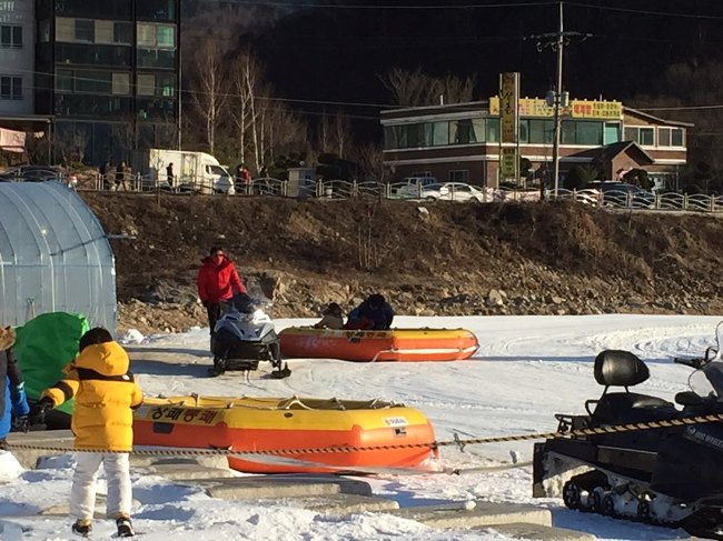 불행이도 송어얼음낚시는 지구온난화로 인한 이상기온으로 오대천의 얼음이 두껍게 얼지 않았습니다. 때문에 관광객의 안전을 위해서 제가 방문한 날은 안타깝게도 얼음 낚시터의 운행을 하지 않고 있었습니다.