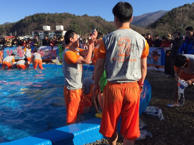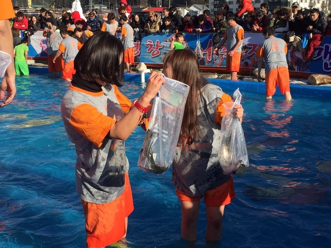 12월 평창송어축제가 아니면 할 수 없는 송어맨손잡기는 추위도 잊어버리게 만든 정말 재미있는 행사입니다.
