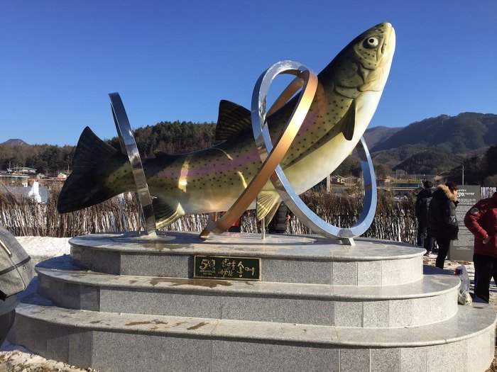 매년 행사가 진행이 되고 있으며 평년과 달리 힘찬 송어조형물이 공개되었습니다.