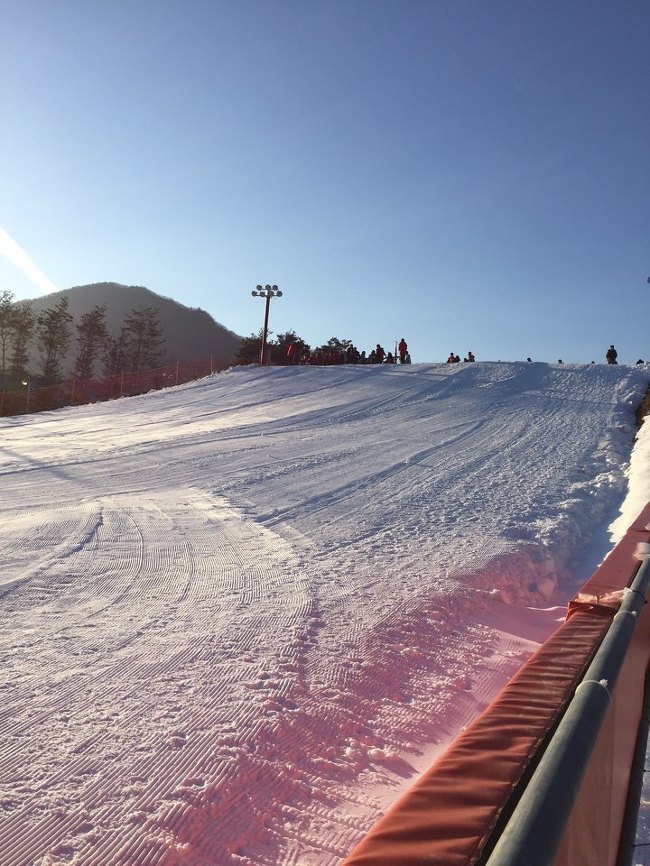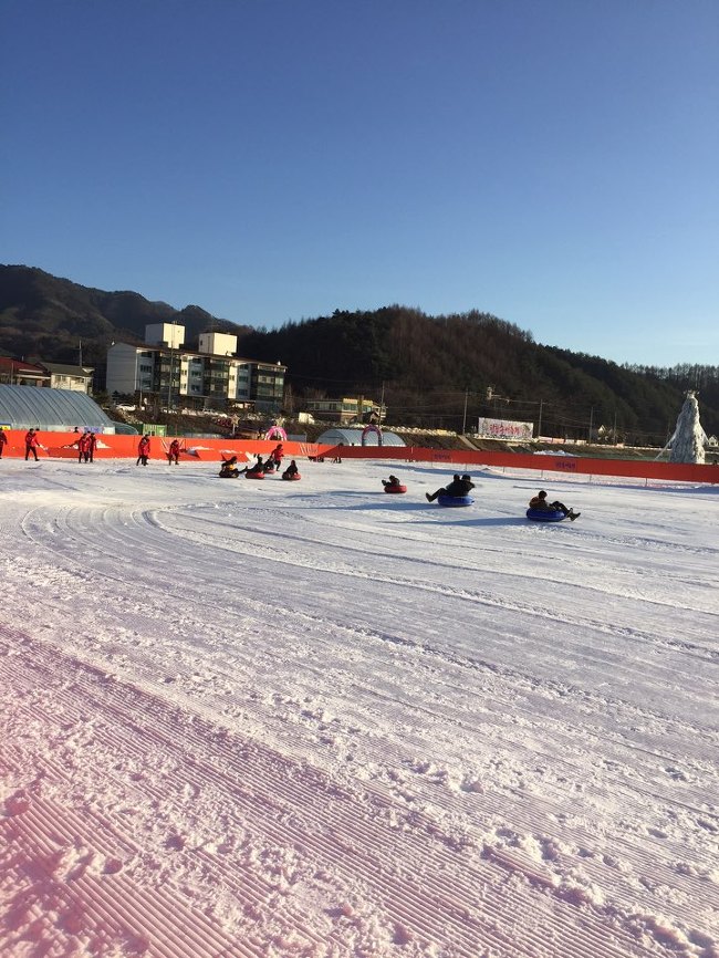 깨끗한 눈 위에서 눈썰매에 몸을 맡기고 내려오면 마치 어린이가 된 것처럼 들뜨고 재미있었습니다. 각각의 레일마다 안전요원이 배치되어 있어 안전하게 즐길 수 있습니다.