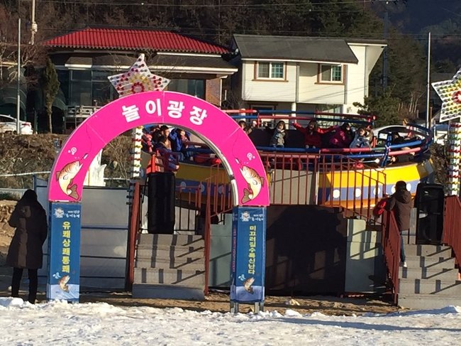 눈썰매, 스노우레프팅, 4륜오토바이, 디스코팡팡, 미니기차 그리고 메인 행사인 송어맨손잡이와 송어얼음낚시가 있습니다.