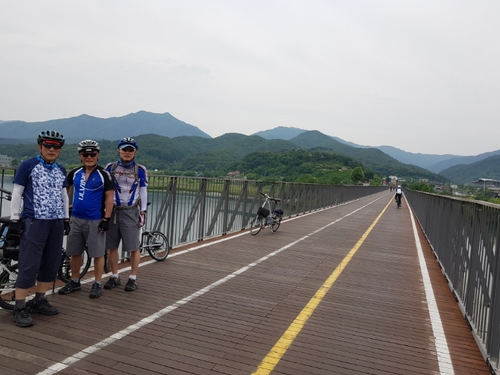 4인의 잔차팀은 세계적인 풍광을 자랑하는 코스 남한강잔차길을 음미하며 주행하다