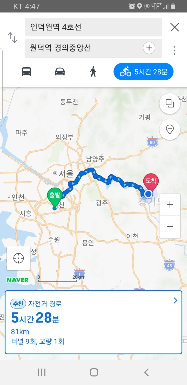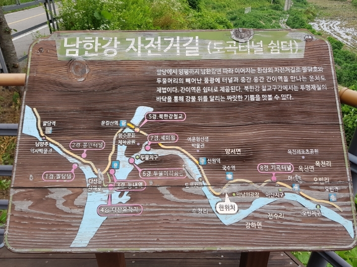 잔차팀4명은 730남한강 황금코스를 복습하며 국수역 까지 주행하다. 비가 많이오고 강고의 펑크로 일정을 마감하다
