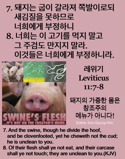 율법은 1차적인 것으로, 그것을 통해 그 다음 단계인 예수 그리스도를 볼 수 있어야 한다. 그러나 많은 이들이 1단계에서 2단계로 넘어가지 못해 넘어진다. 저녁의 음식인 고기만 찾고, 아침의 음식인 떡을 찾지 않는다. 그들이 원하는 고기를 먹으면 죽는데, 먹고 죽더라도 그 고기만 즉 어둠의 양식만 찾는다. 오늘날 야생동물을 먹어서 수많은 병을 일으켜 인류를 죽음으로 몰고가는 것과 똑같은 것이다.