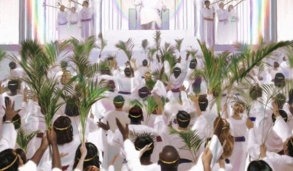 9. 이 일 후에 내가 보니 각 나라와 족속과 백성과 방언에서 아무라도 능히 셀 수 없는 큰 무리가 흰옷을 입고 손에 종려 가지를 들고 보좌 앞과 어린 양 앞에 서서