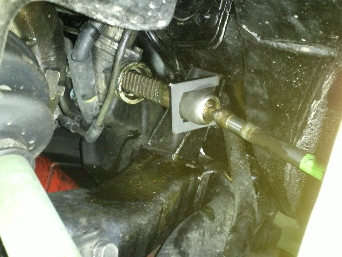 이 사진은 이미 구품 이너타이로드 볼트에 맞게 가공한 지그를 삽입한 상태입니다.