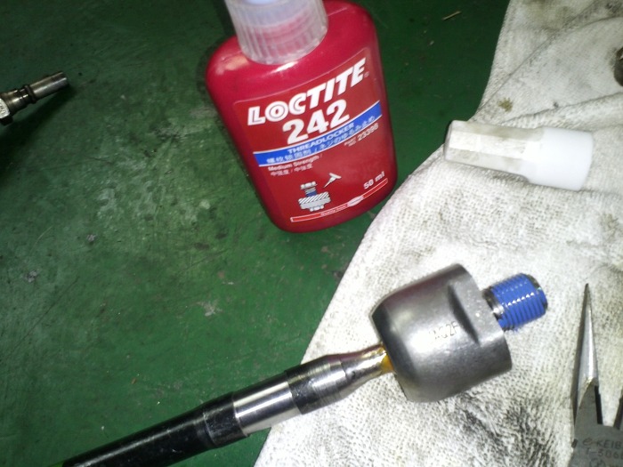 신품 이너타이로드는 고정와샤가 없으니 나사고정제를 결합부위에 바르고 결합합니다.