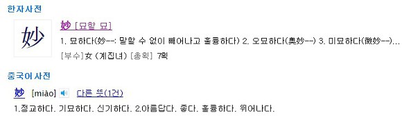 (중국어 사전에 보면 이 묘(妙)자에는 '아름답다'는 뜻까지 있으니까요^^)